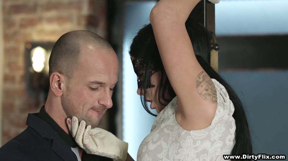Beautiful brunette in mask and sexy lingerie Sofia Like gets fucked for money