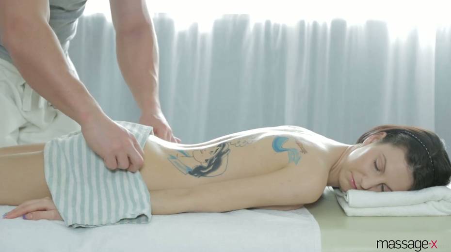 Babe with tattooed back Lilu Tattoo is fucked by horny insatiable masseur