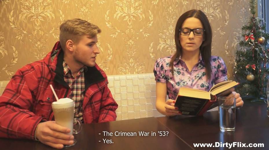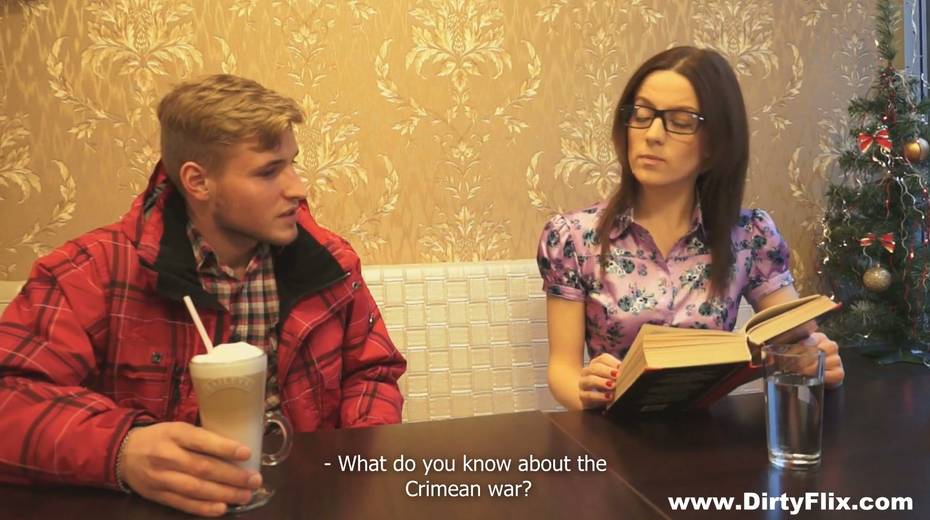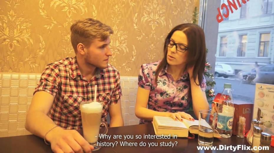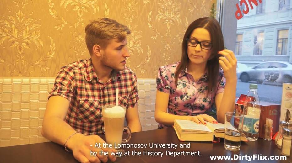 Nerdy chick in glasses Lizaveta Kay is fucked and jizzed by sex-hungry collage mate