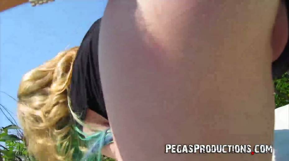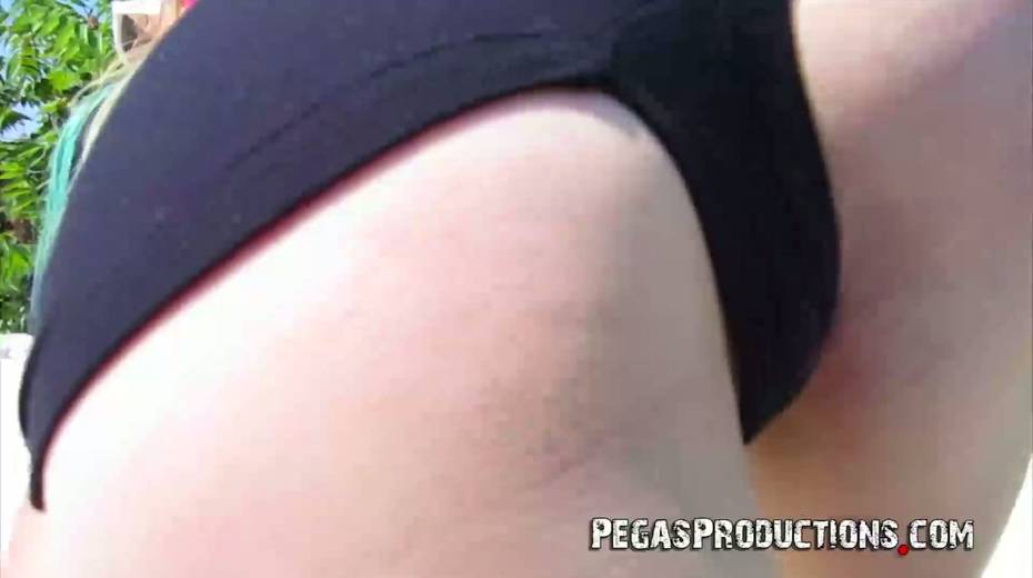 Slutty chick Malory Maze gives a handjob and tugjob by the poolside