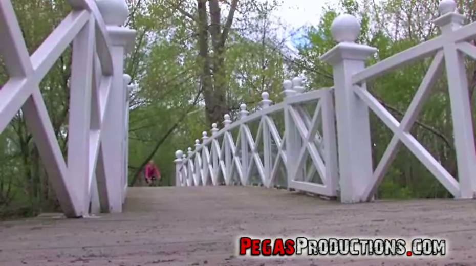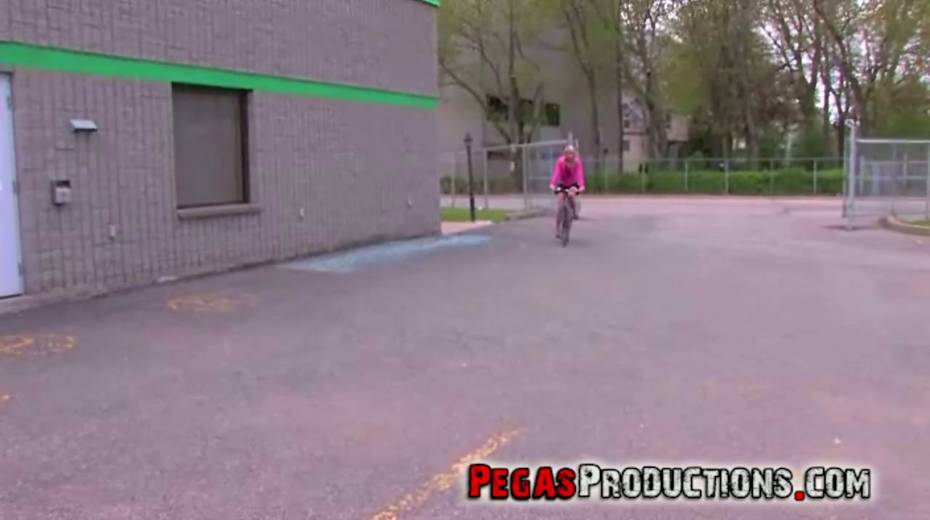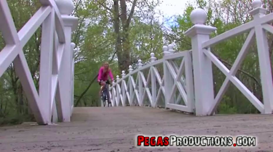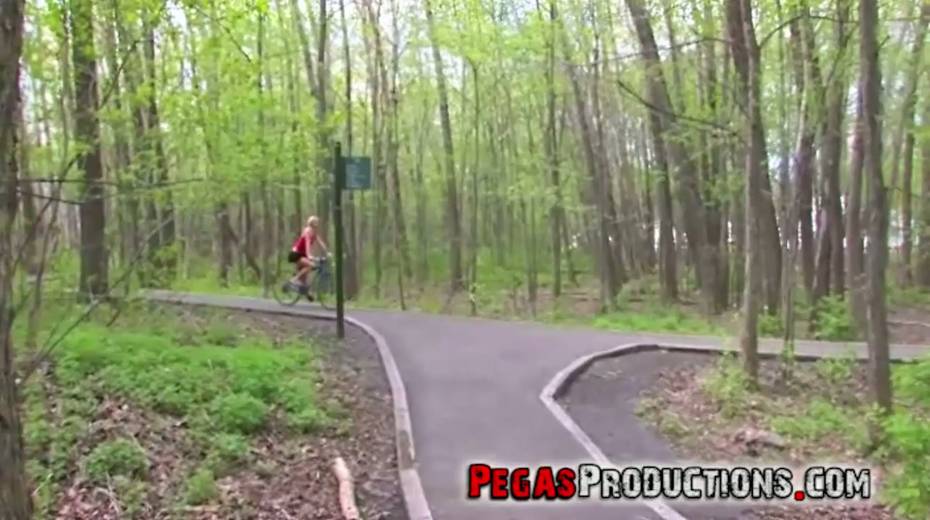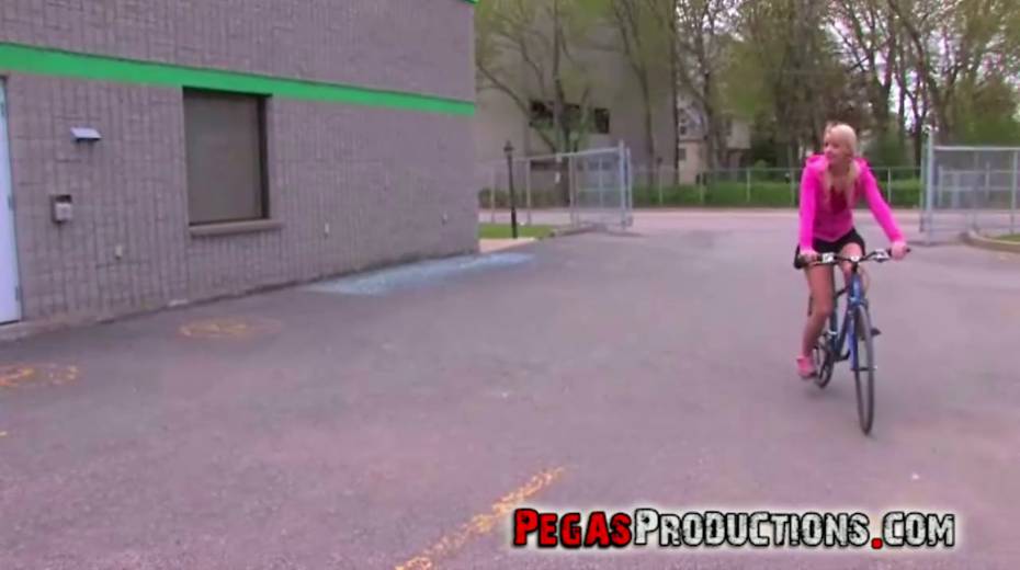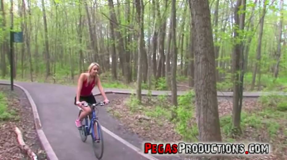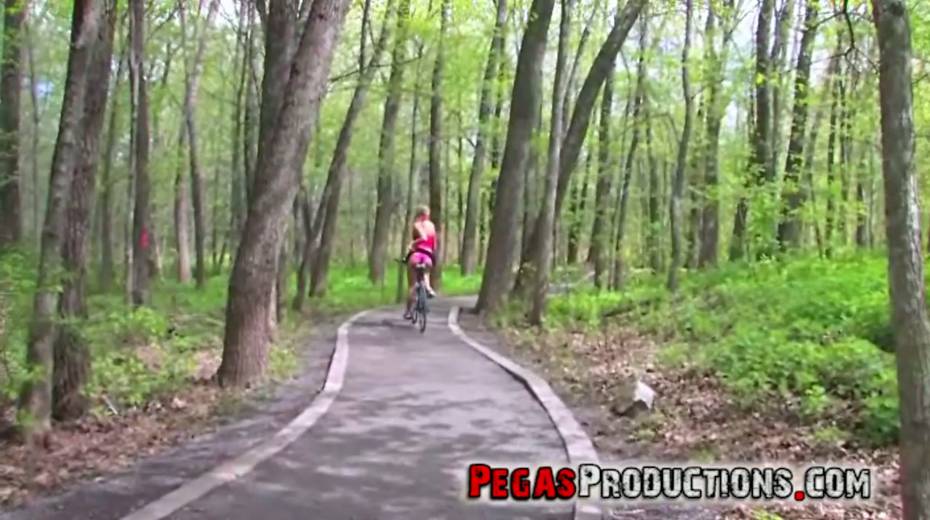 Nasty girl Candy Kiss is riding her bicycle and masturbating her pussy in public