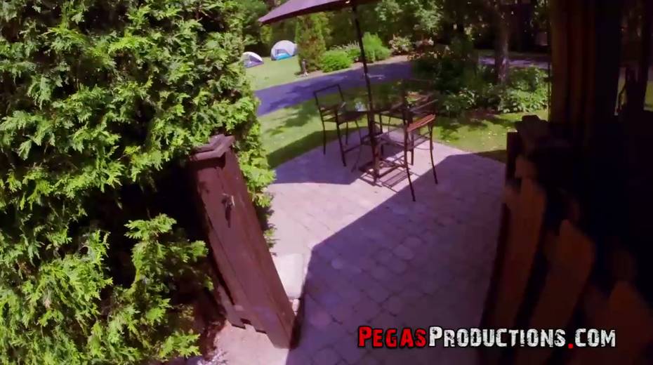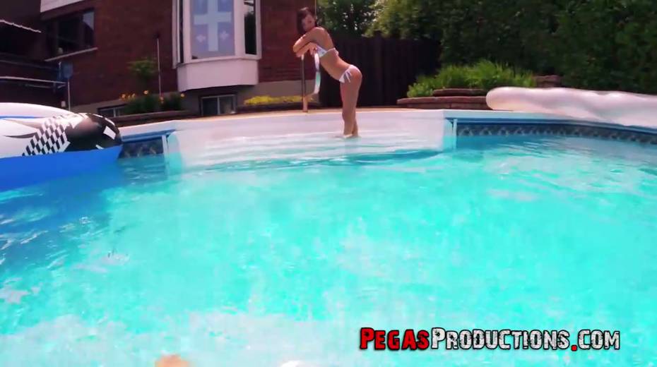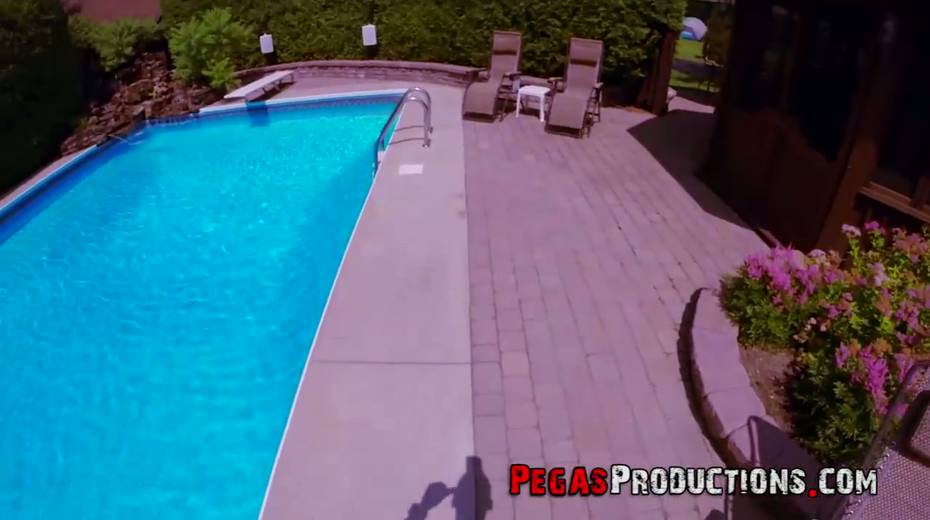 Blond chick Amy Lee gives her head and gets her boobs jizzed by the poolside