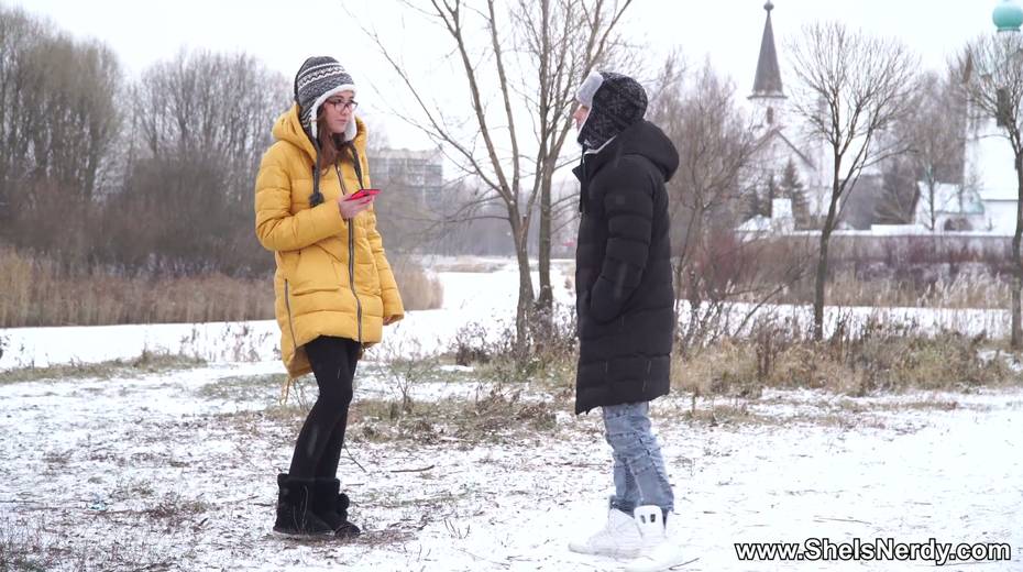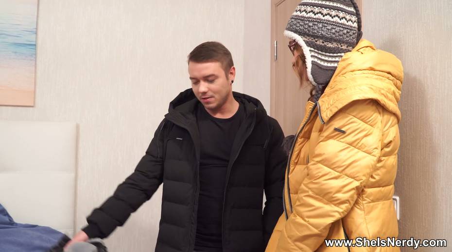 Pretty babe in glasses Gisha Forza gives her head and gets slit fucked