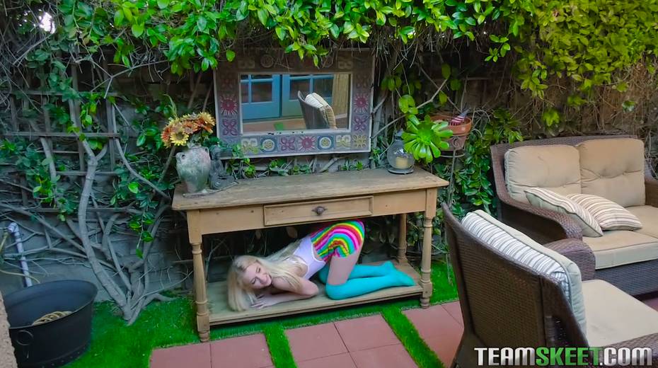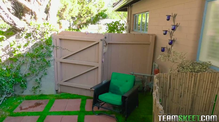 Luscious teen with small tits Riley Star is having crazy sex fun in the garden