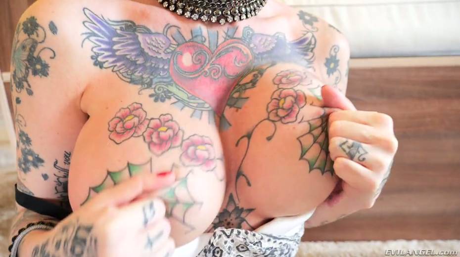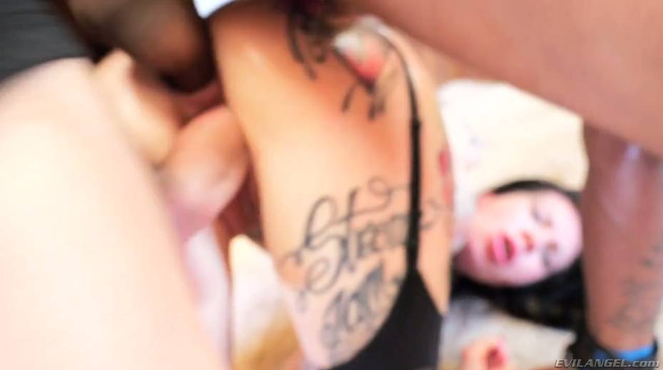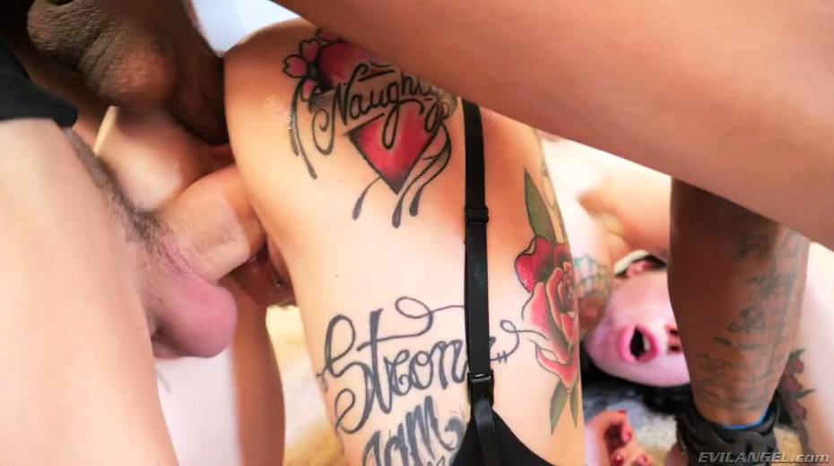 Tattooed hooker with fake tits Megan Inky gets double penetrated and jizzed