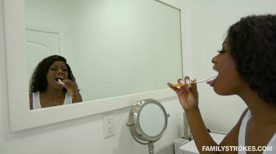 Ebony hottie Lola Chanel is fucked by horny stepbrother in the bathroom