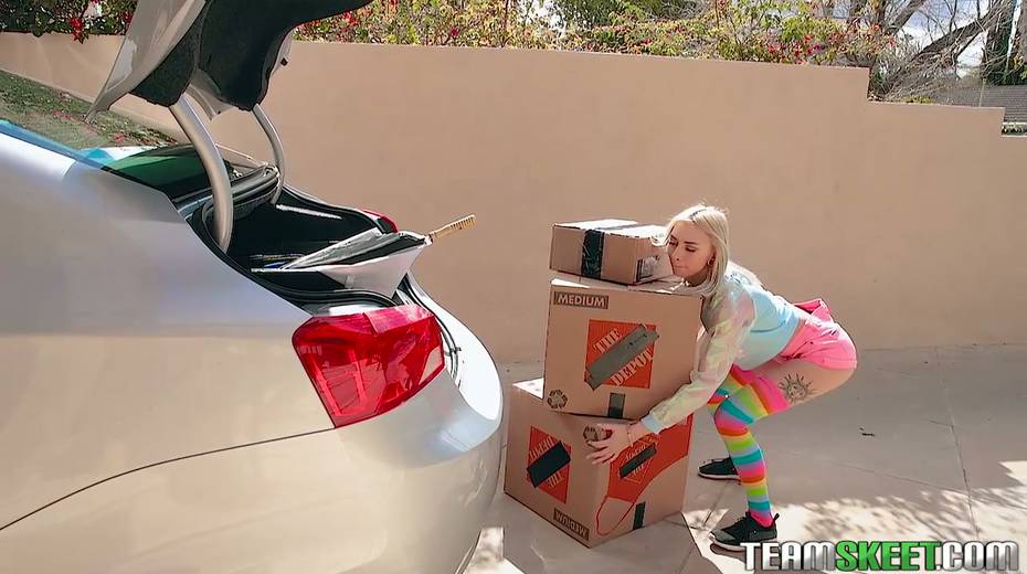 Nice petite blonde Chloe Temple is fucked hard by strong and tall neighbor