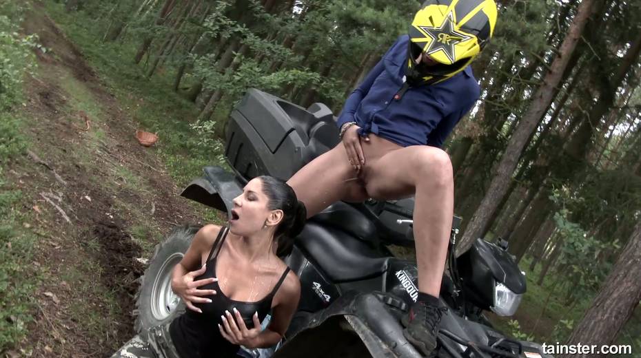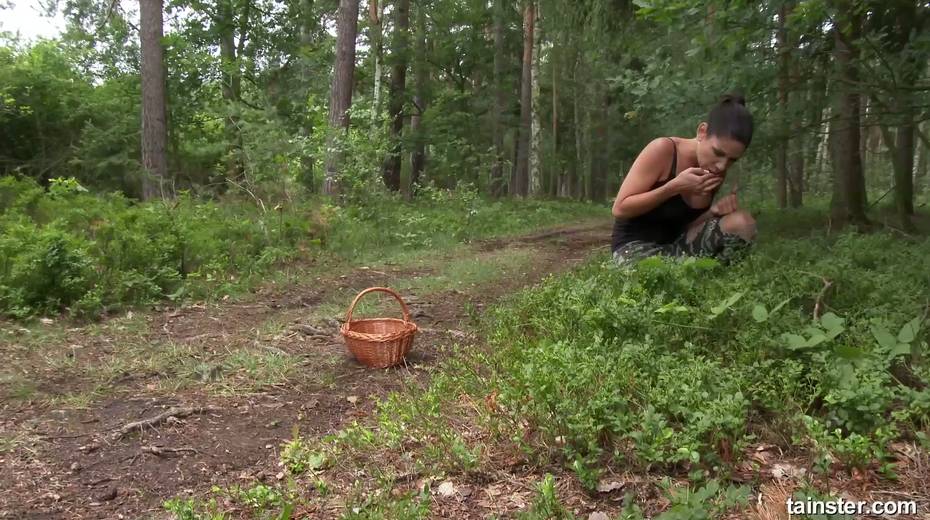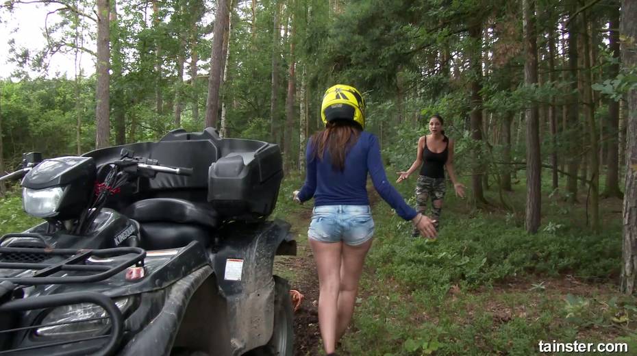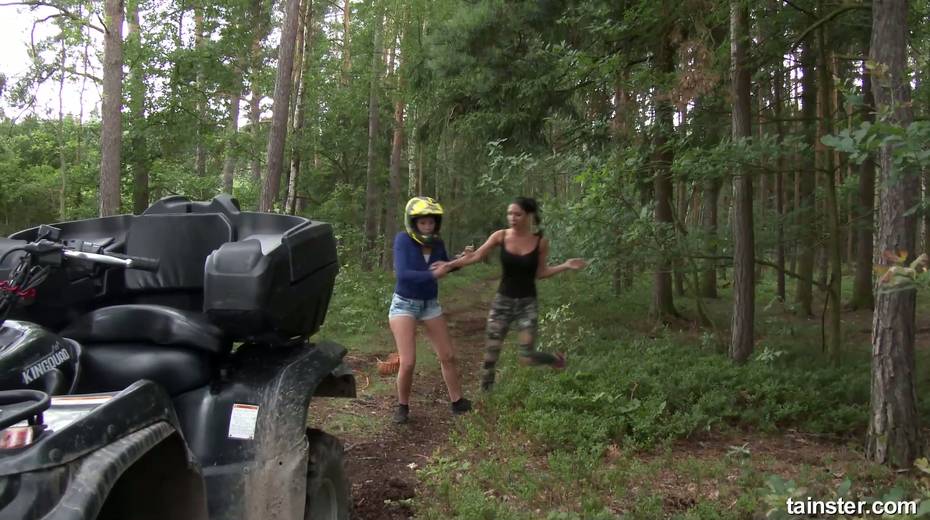 Rachel Evans and her girlfriend are finger fucking each other in the forest
