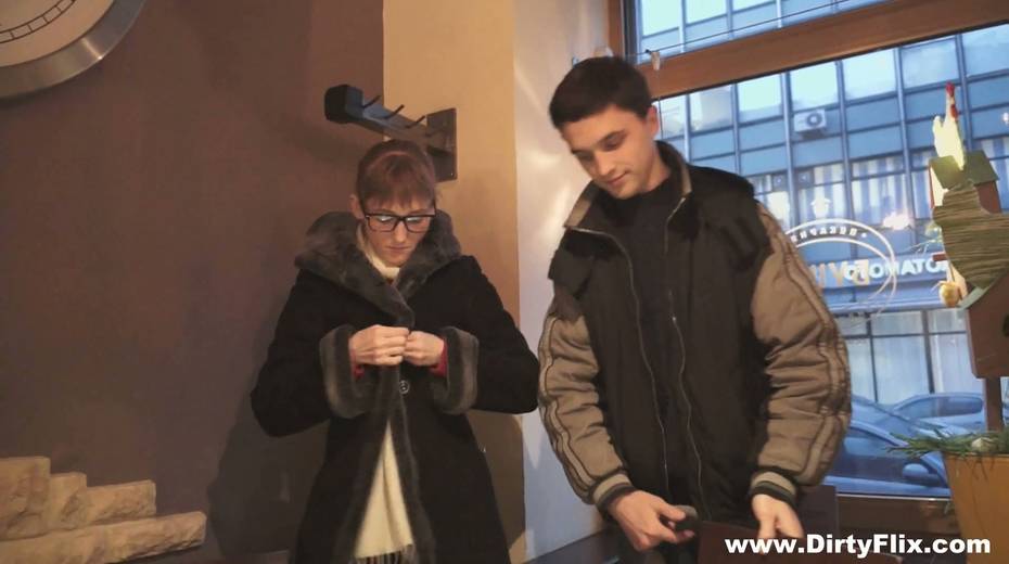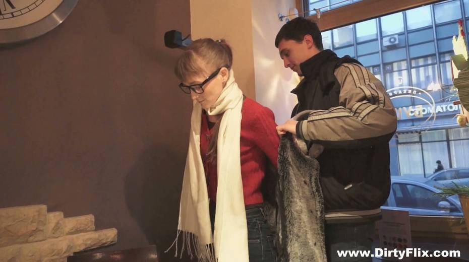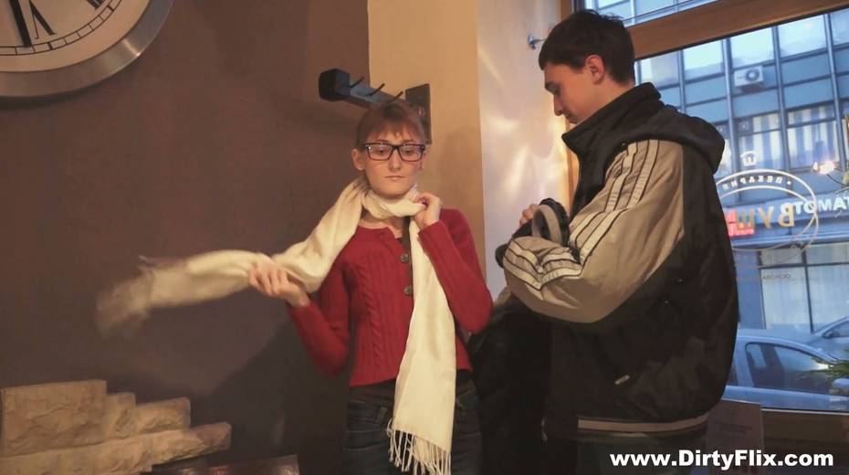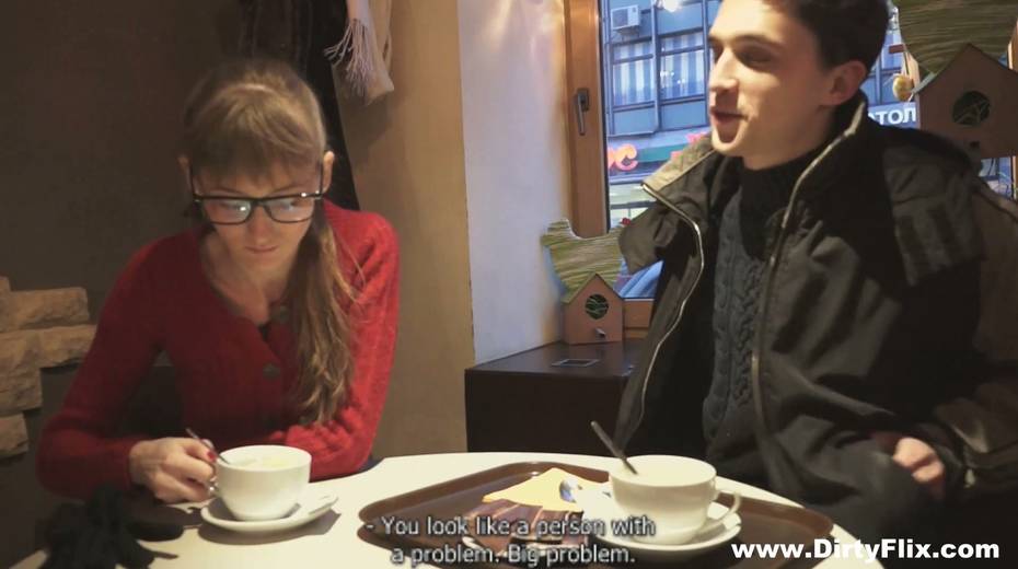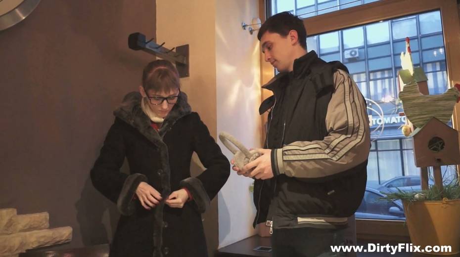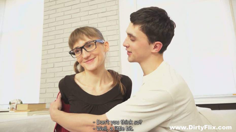 Bare boned nerdy chick in glasses Elena gets facial after steamy pussy pounding
