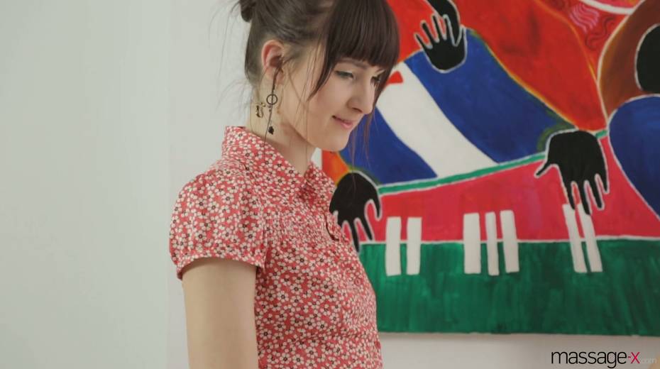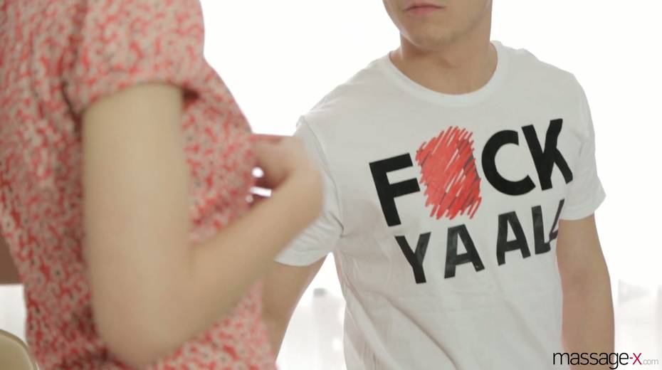 Masseur oils up and fucks leggy nerdy client Mirabella and fills her mouth with sperm