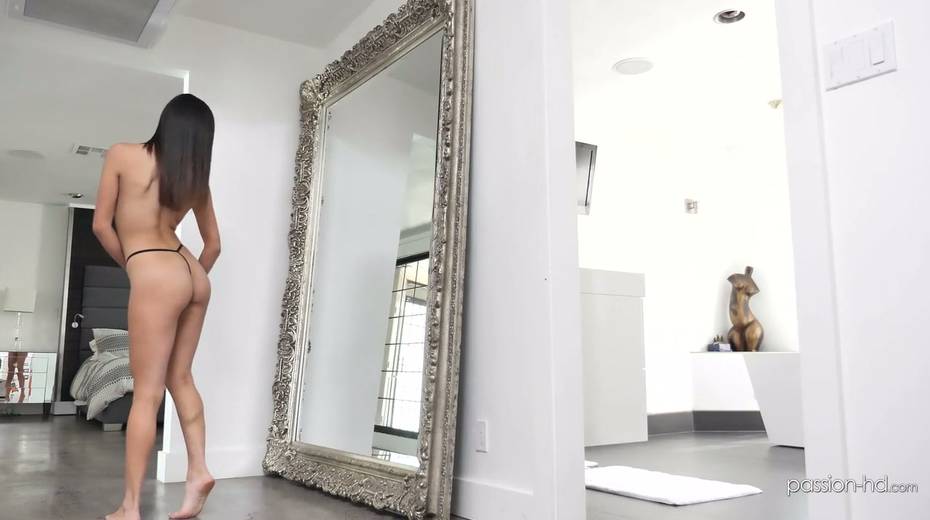 Lewd brunette babe Emily Willis is sucking a big dick in the bathtub