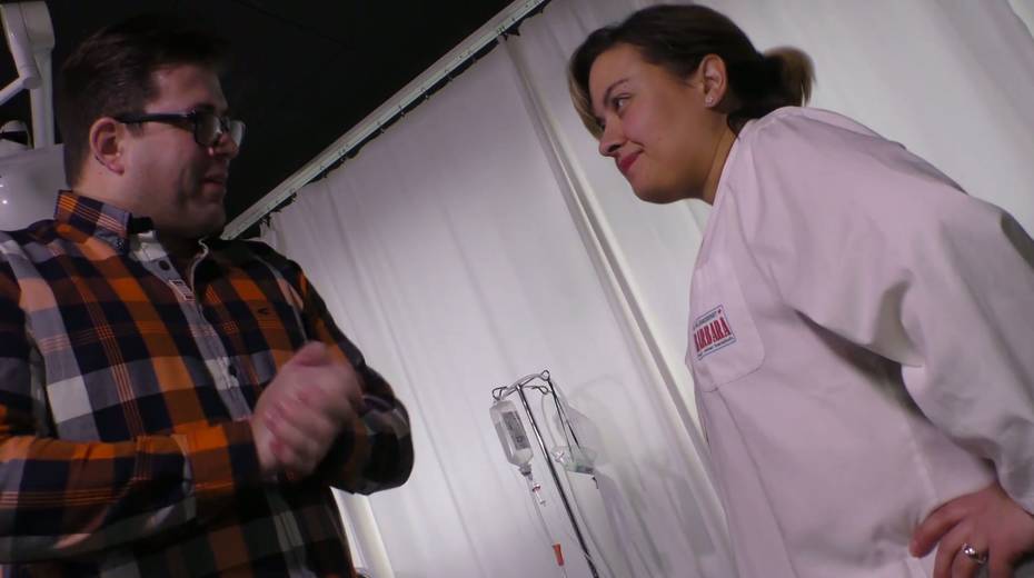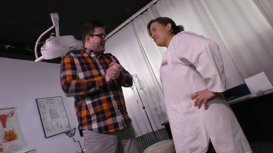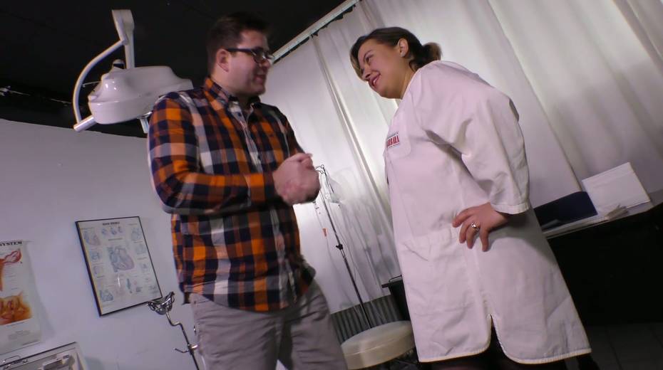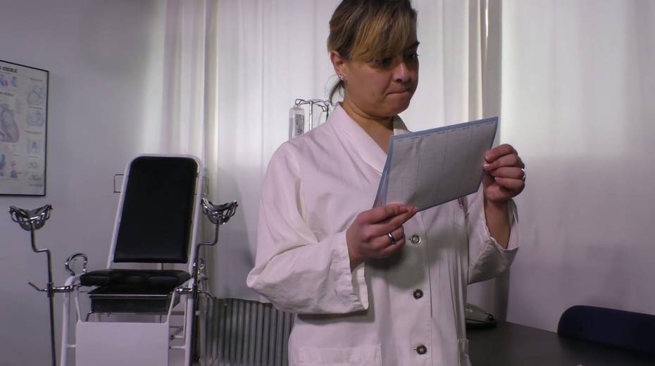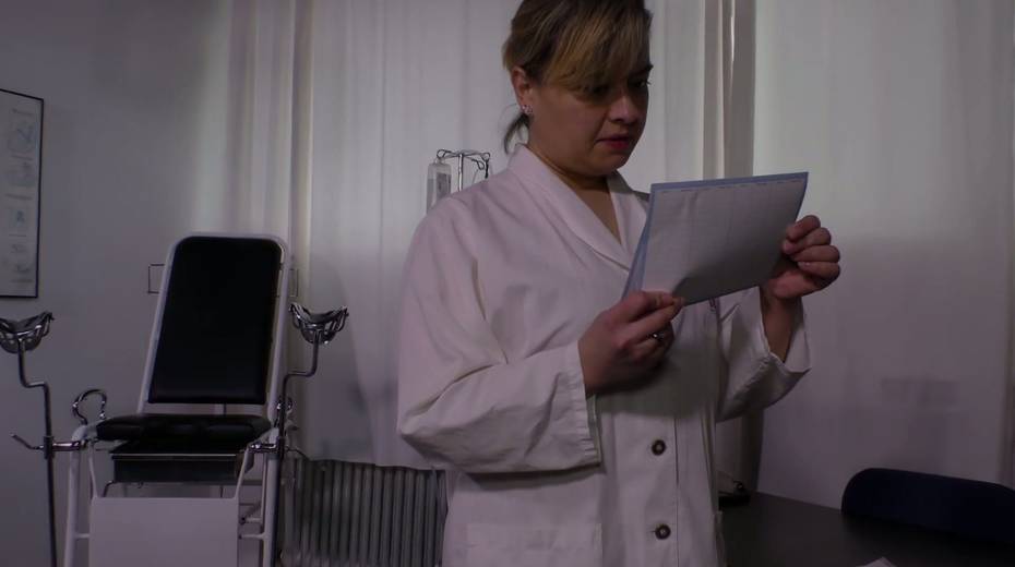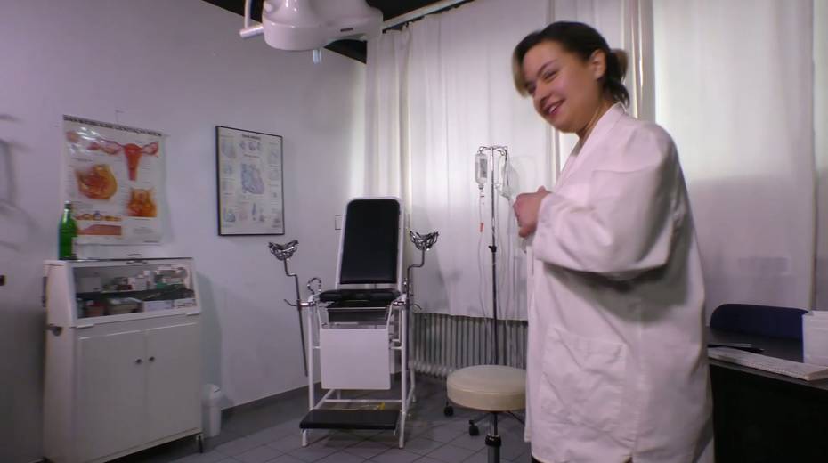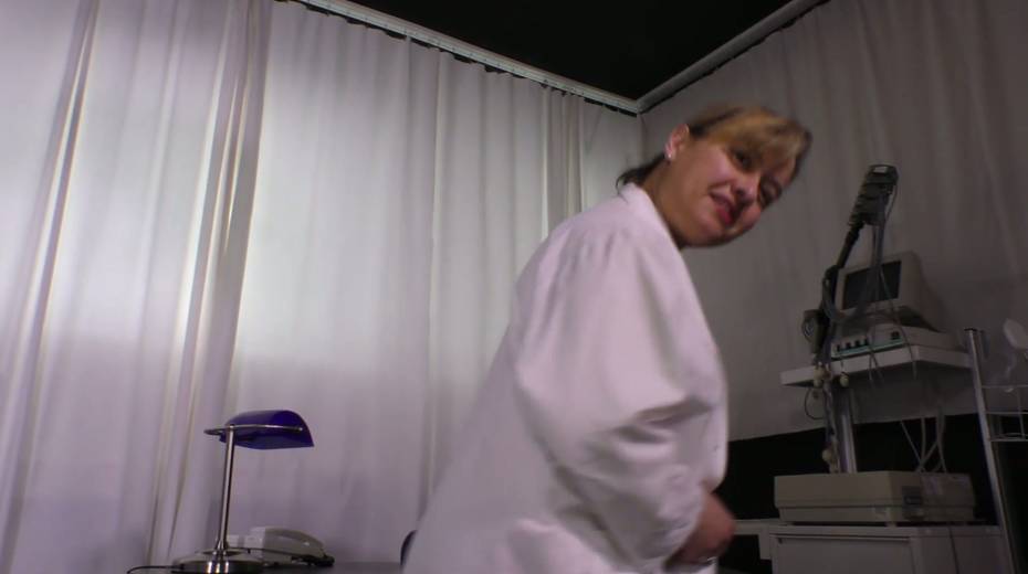 Mature nurse pisses and shows her cunt on a gynecological chair