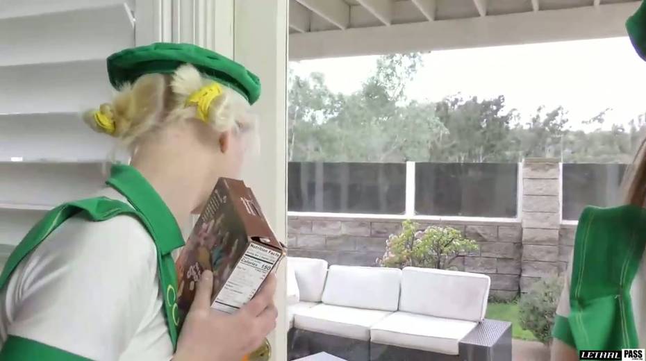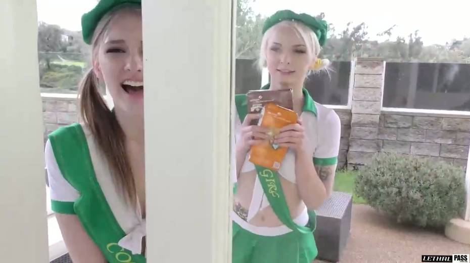 Two cookie girls Alice Pink and her girlfriend share one hard penis