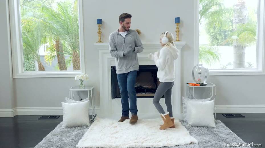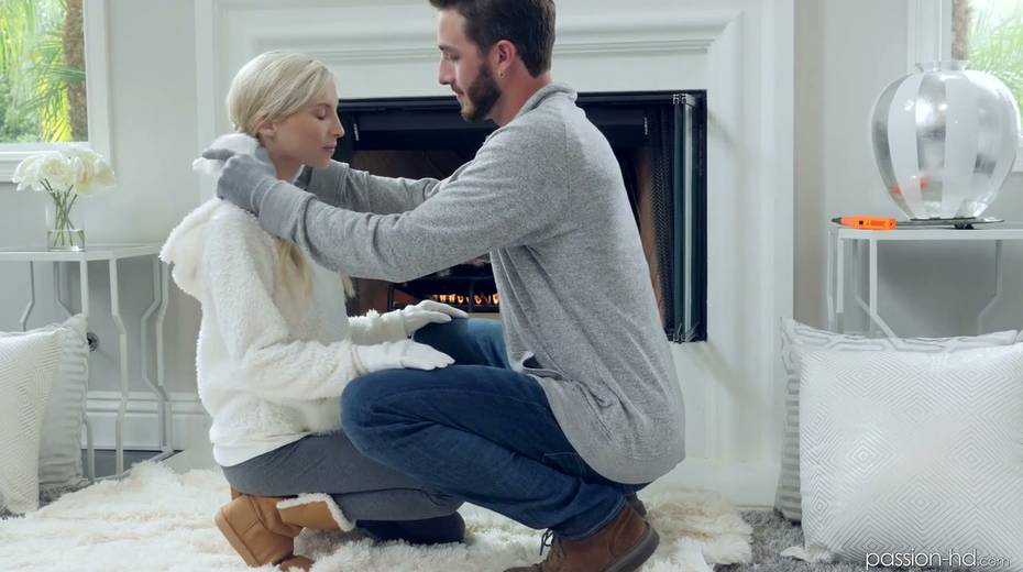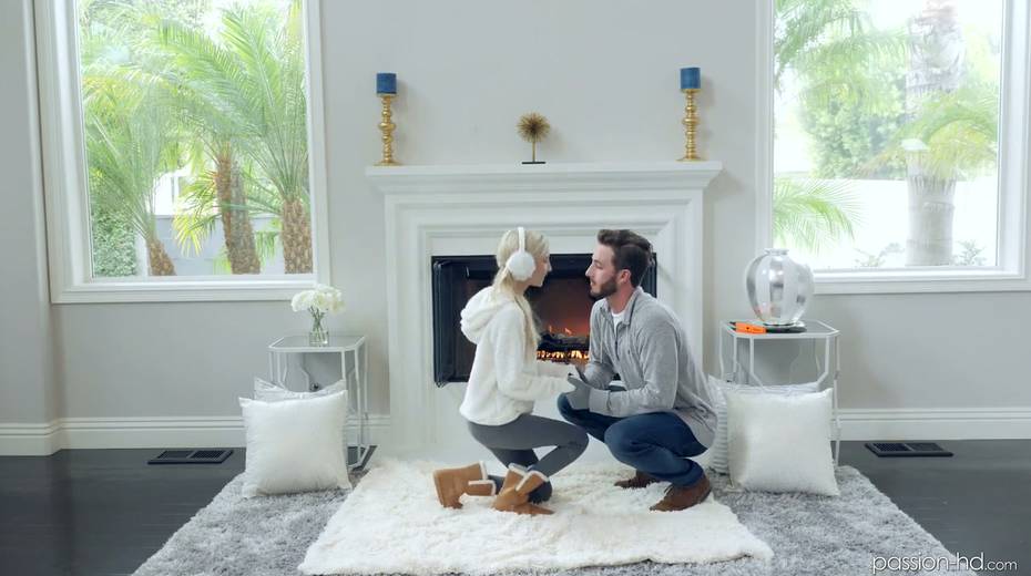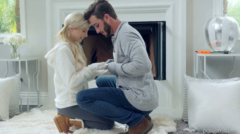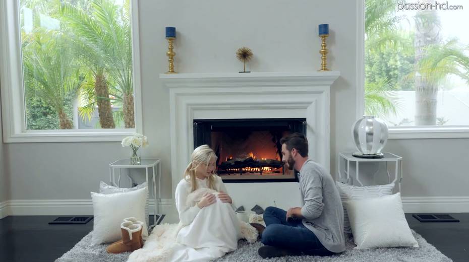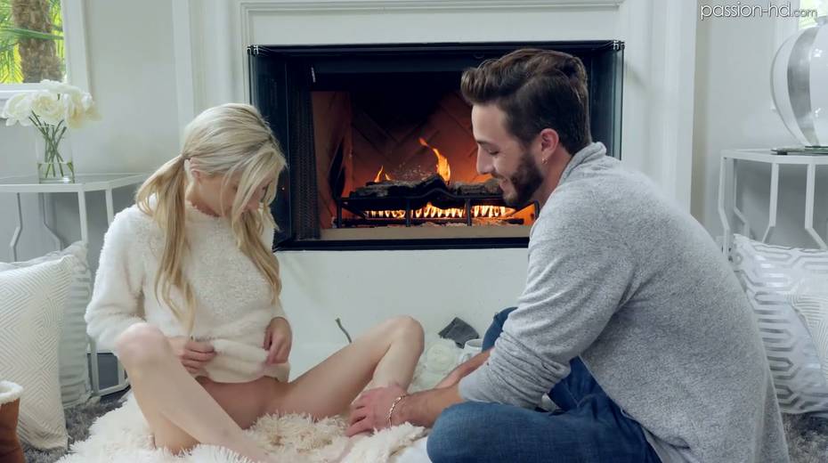 Petite blonde Piper Perri is making love with her new boyfriend by the fireplace