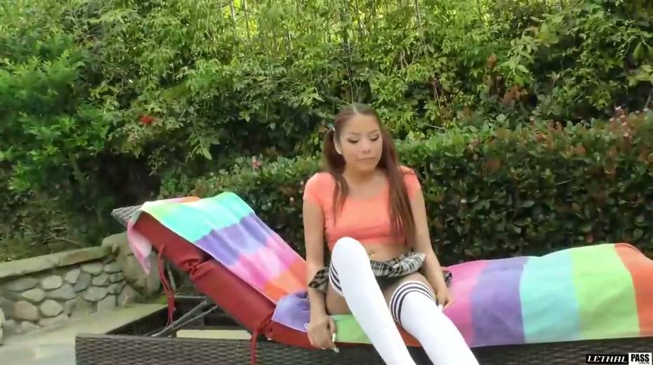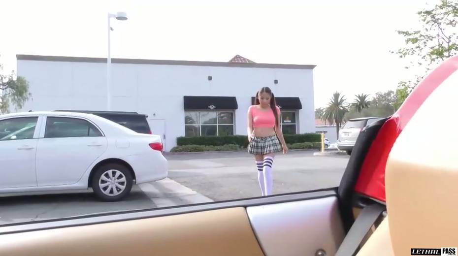 Wench with pigtails Sami Parker gives outdoor blowjob and gets pussy nailed indoor