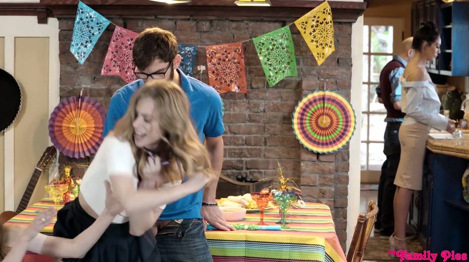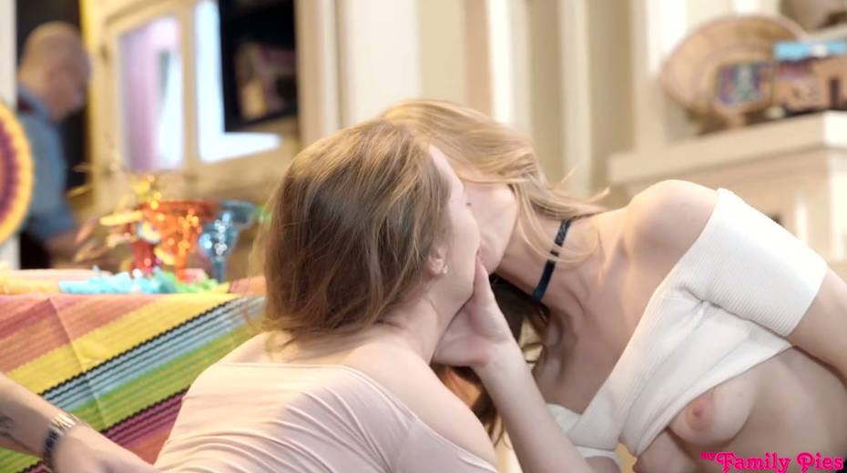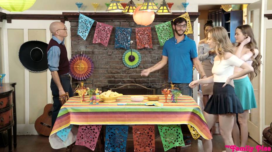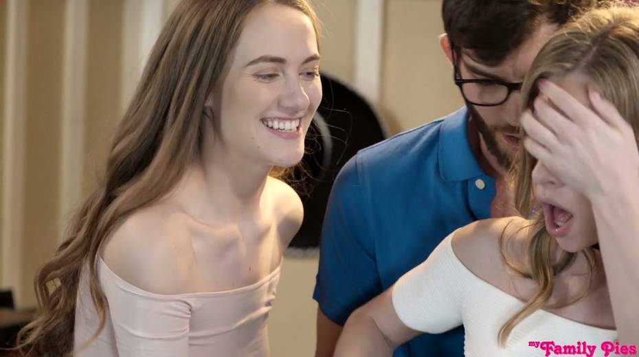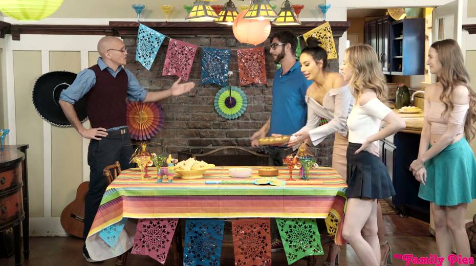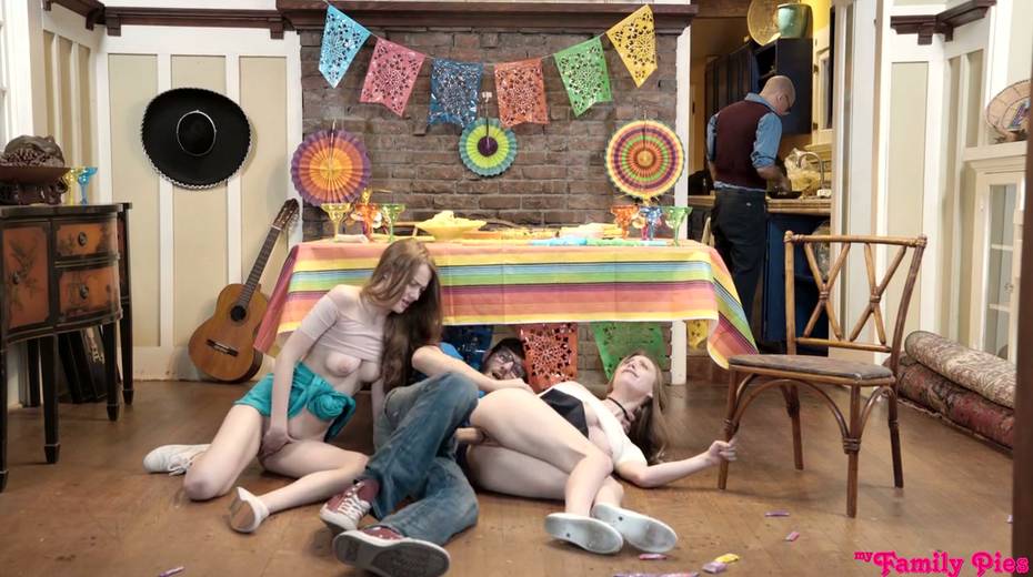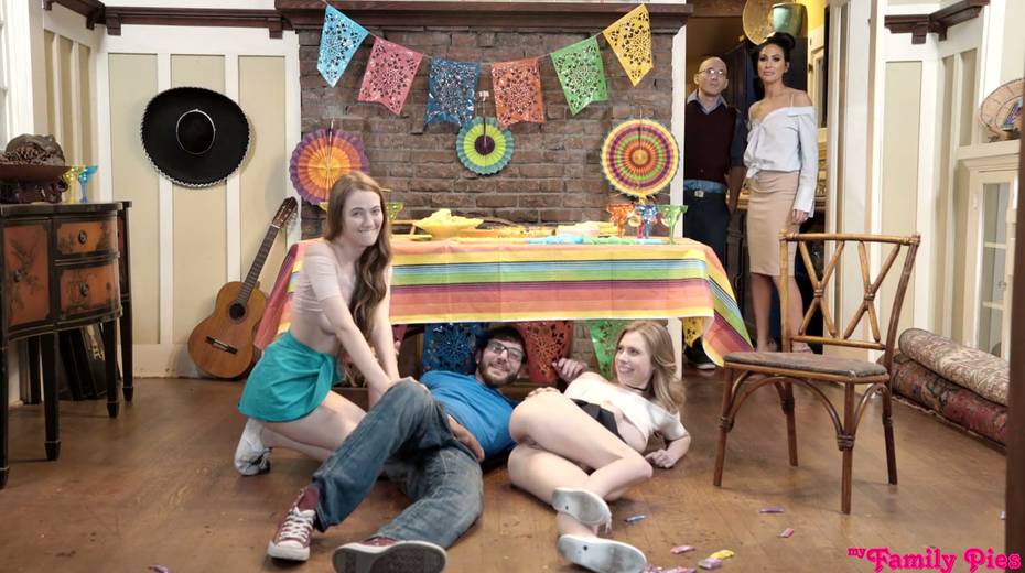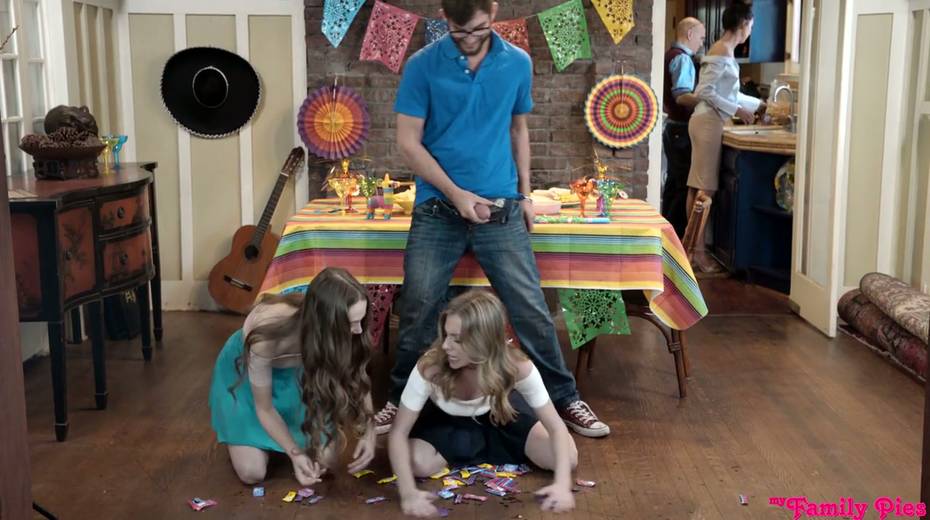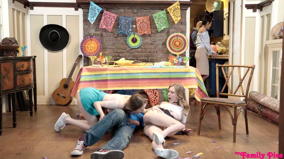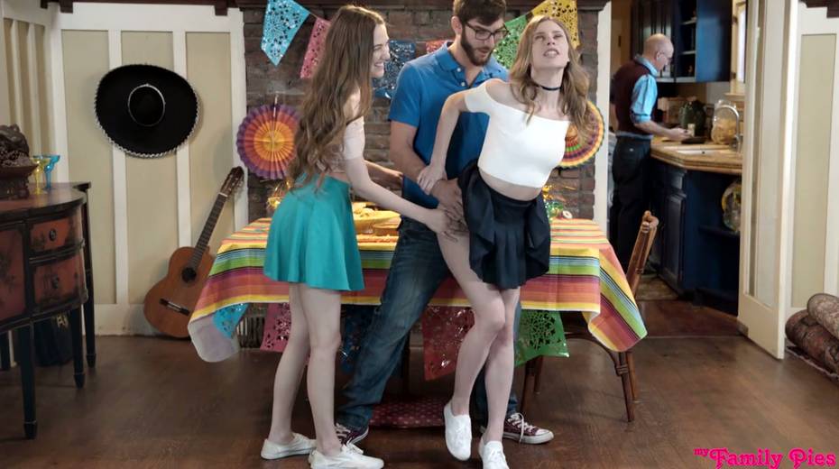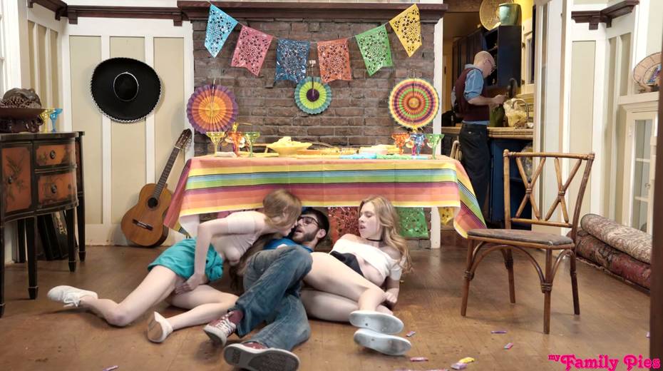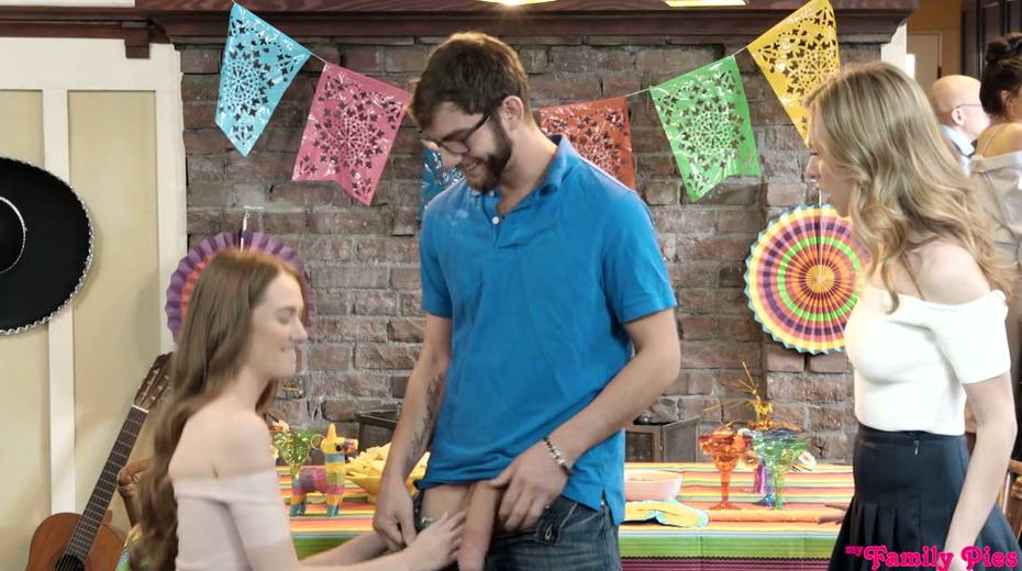 Two adorable and insatiable babes enjoy banging one kinky dude at the party
