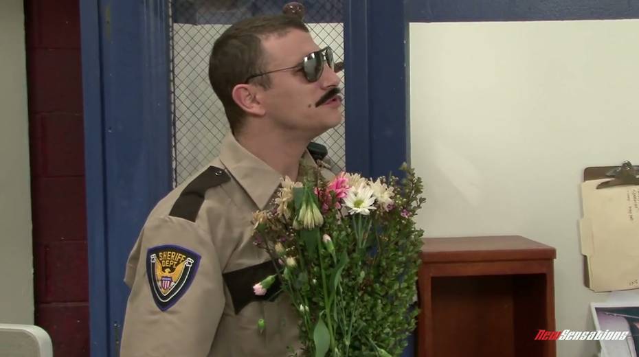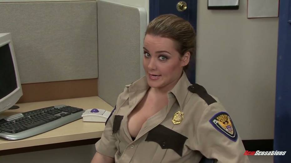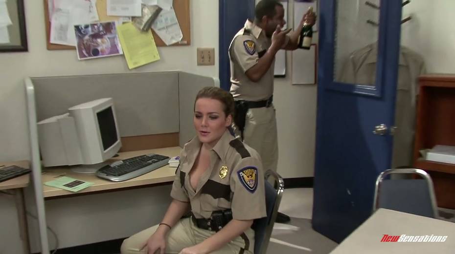 Busty policewoman is having dirty threesome sex at the police station