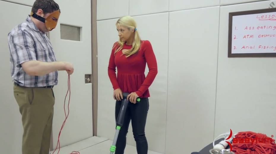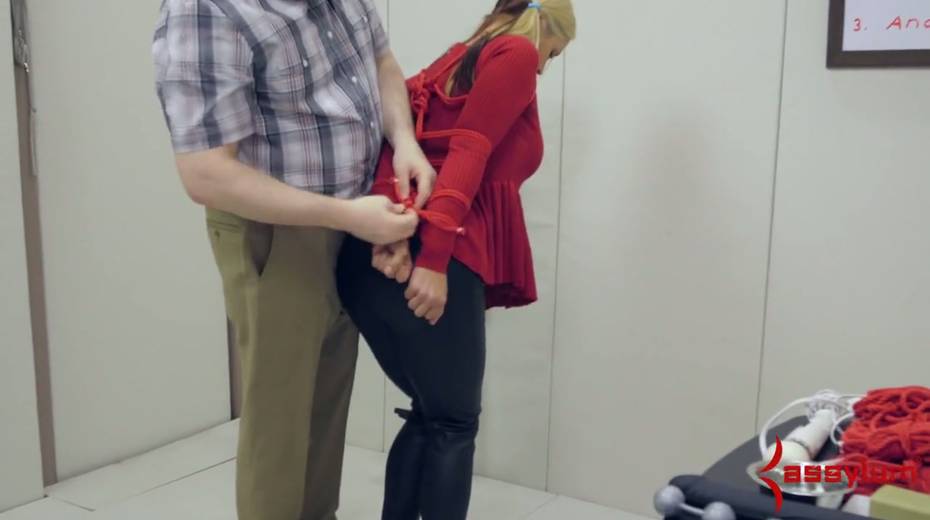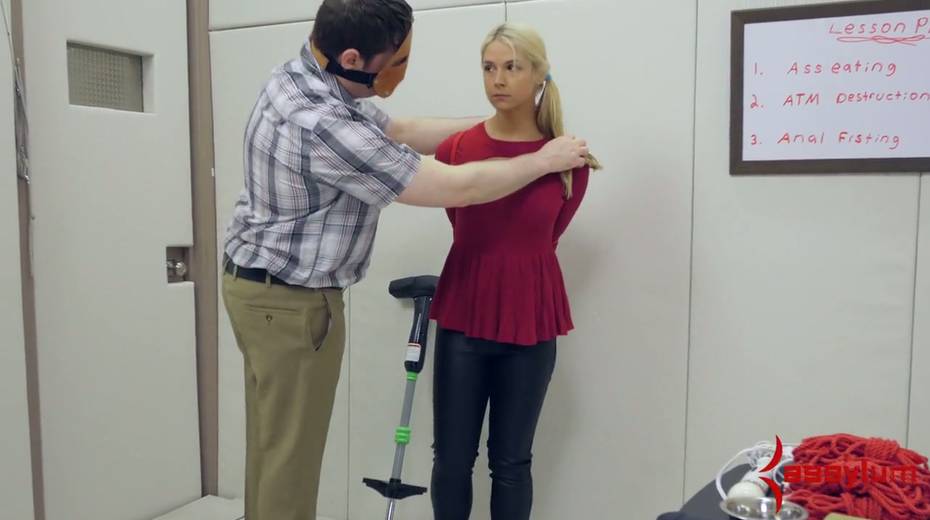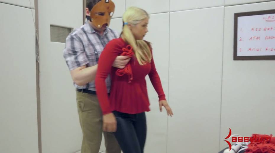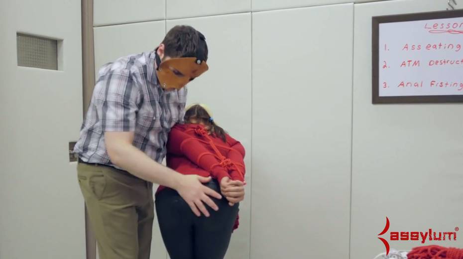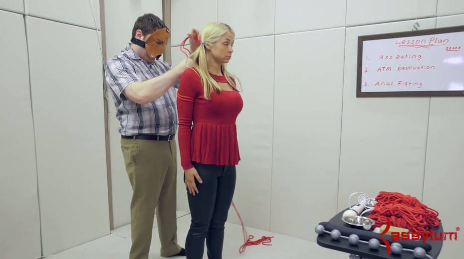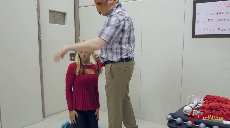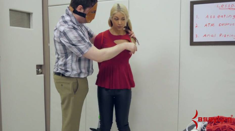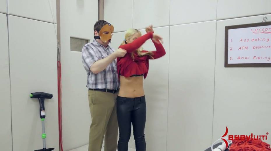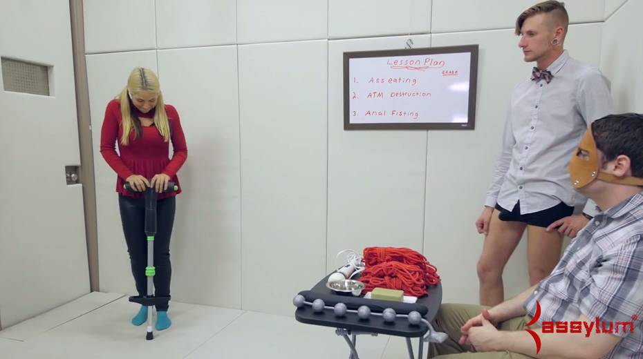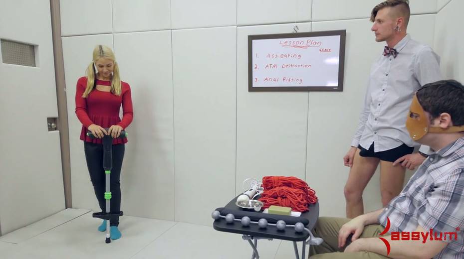 Kinky dude punishes anal hole of sweet looking pig-tailed blond chick