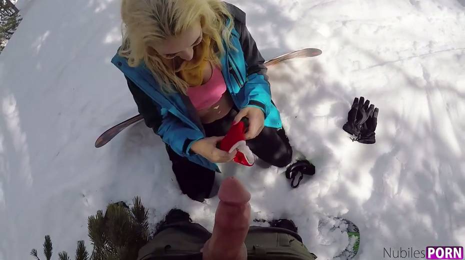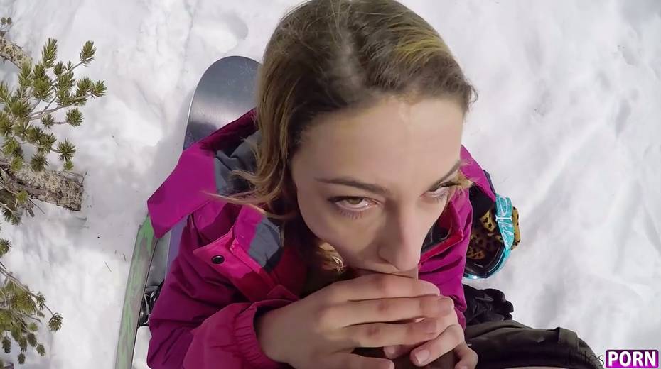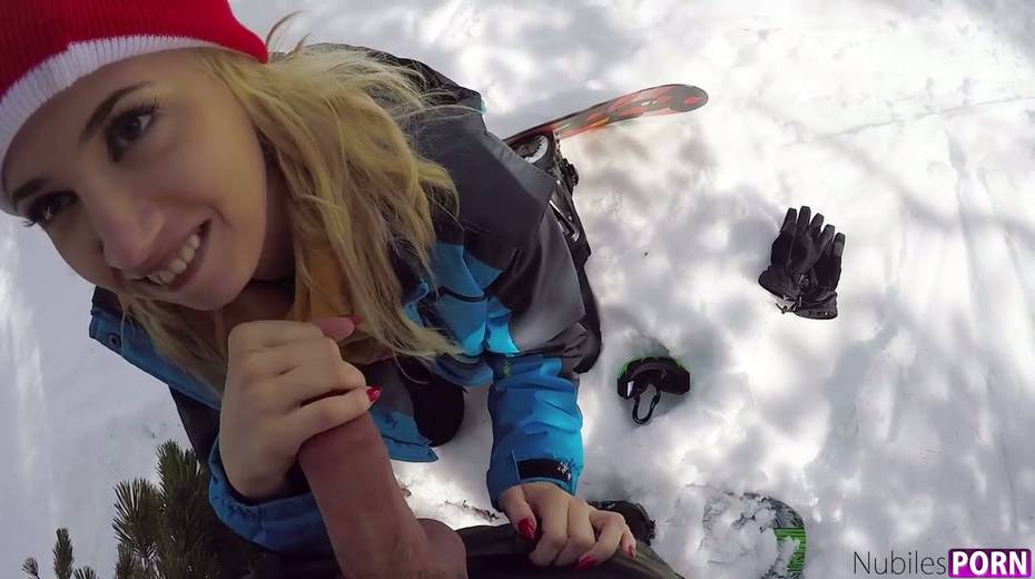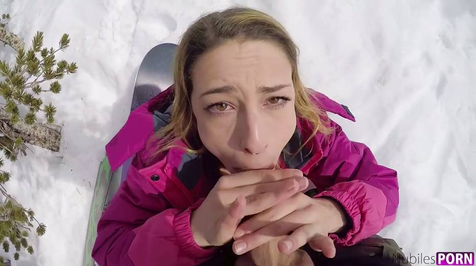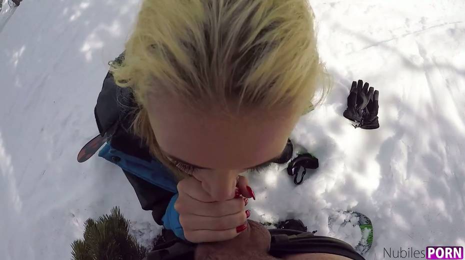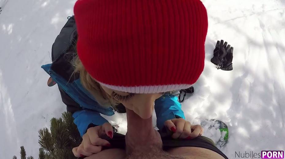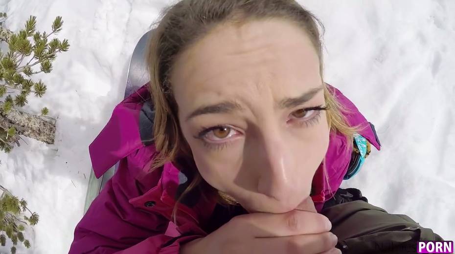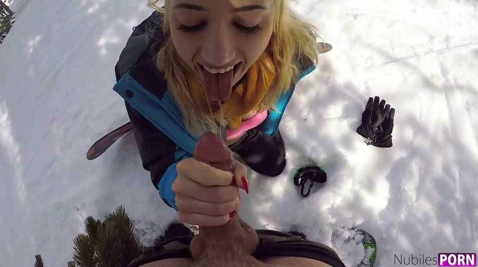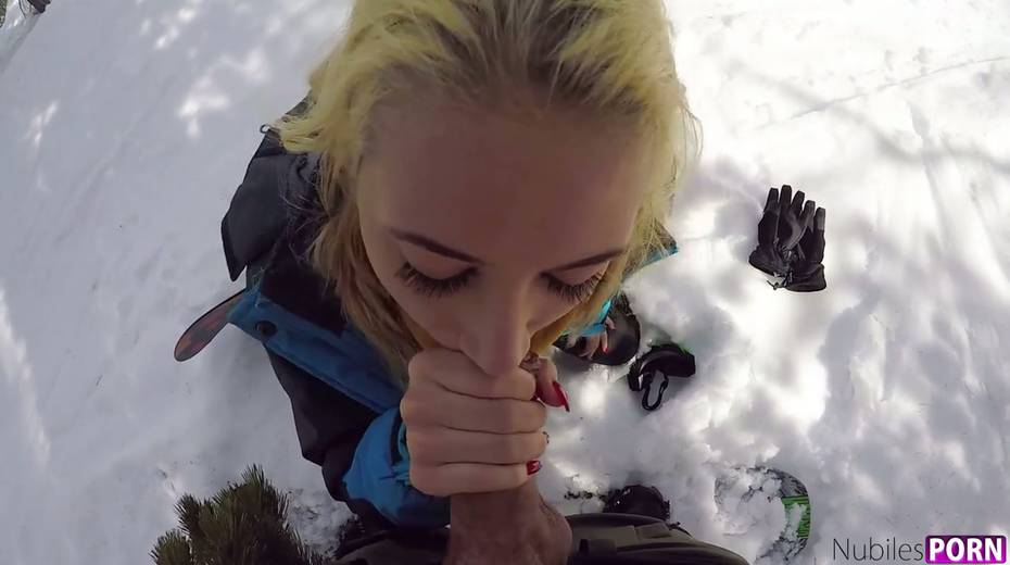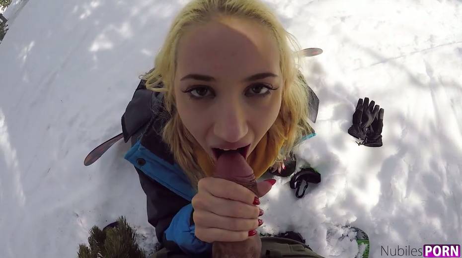 Slutty chick Kristen Scott gives a great blowjob in the snowy mountains