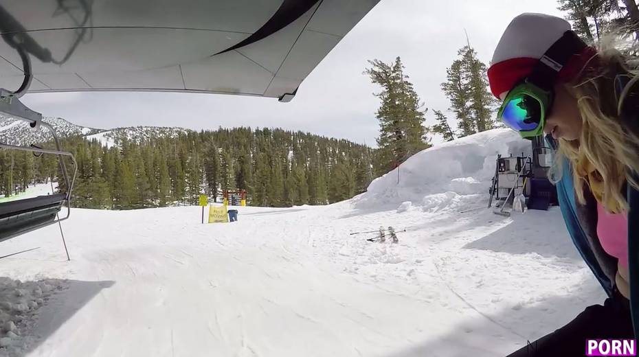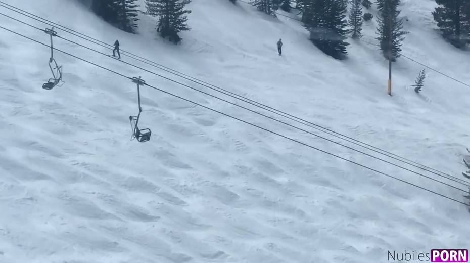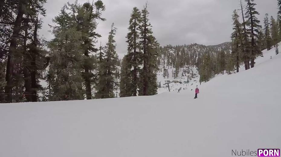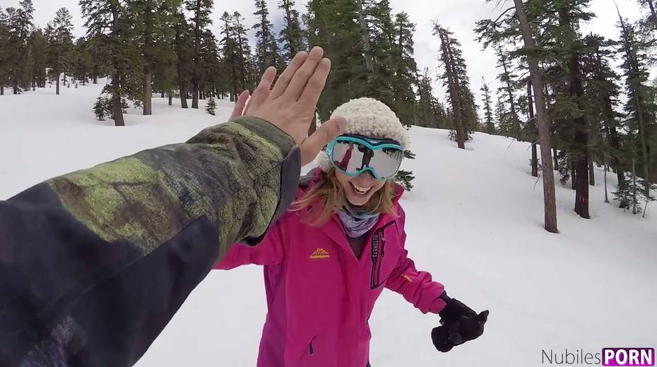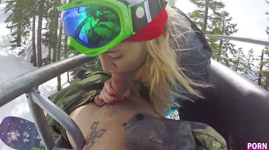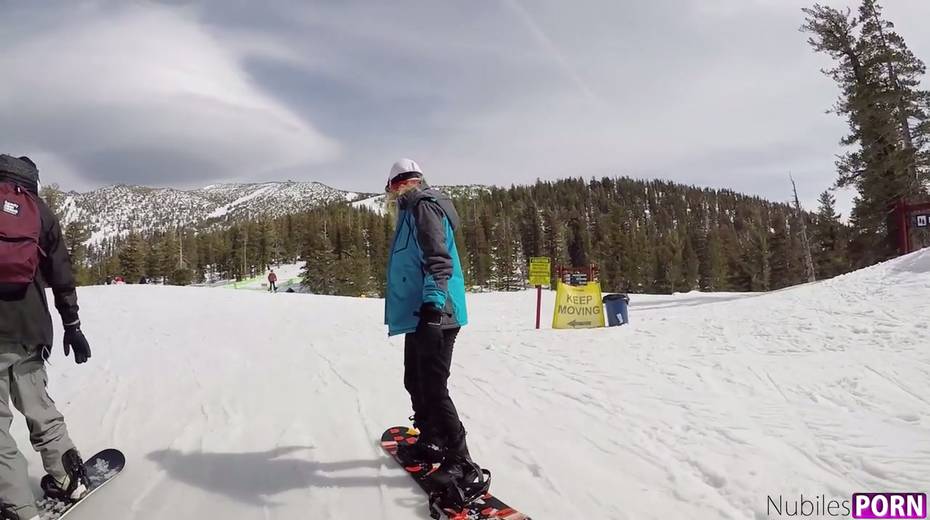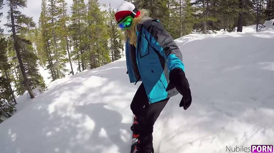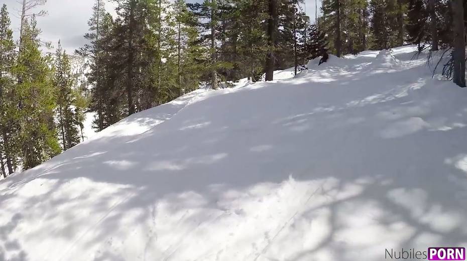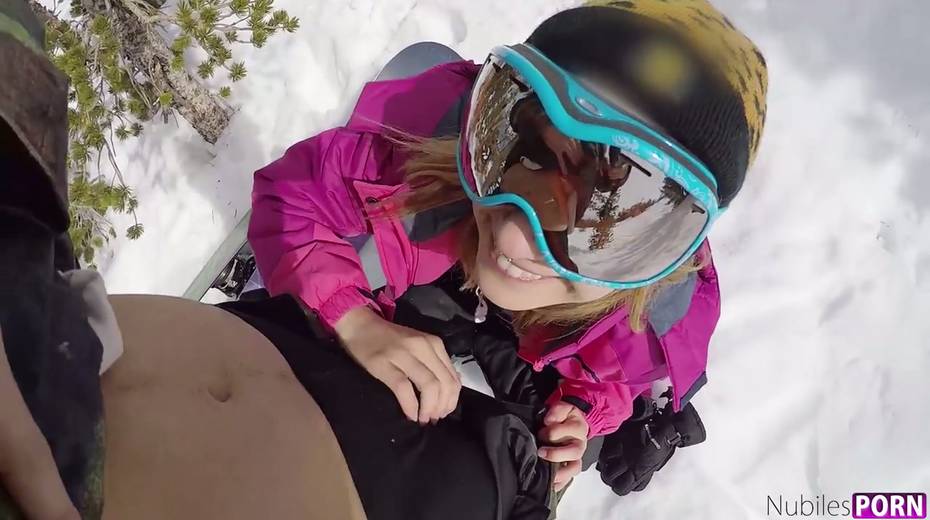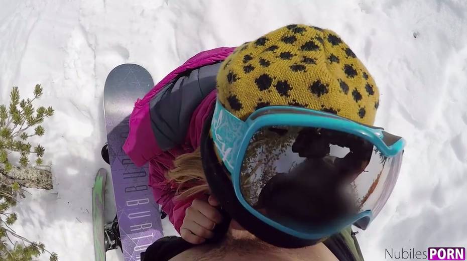 Slutty chick Kristen Scott gives a great blowjob in the snowy mountains