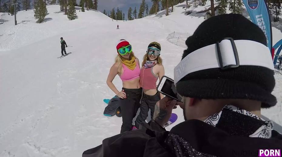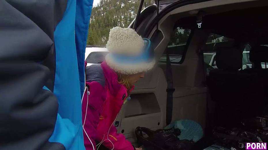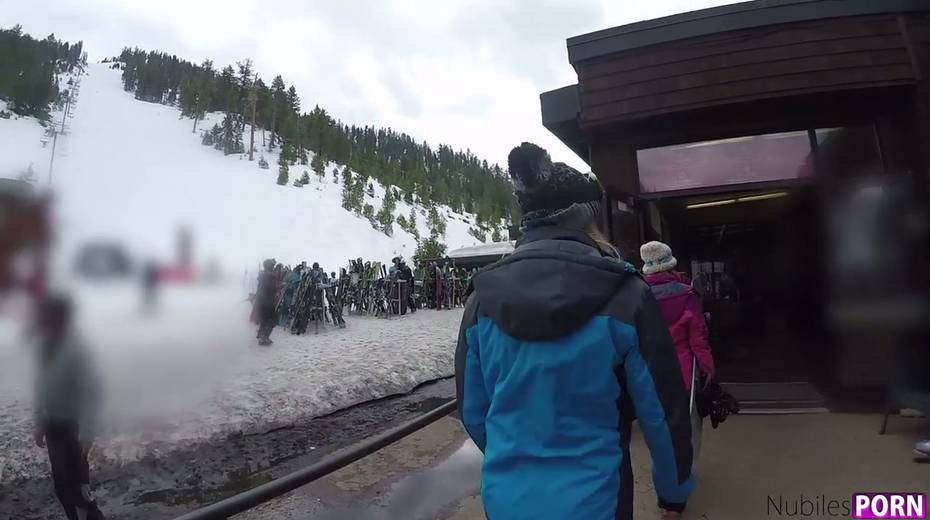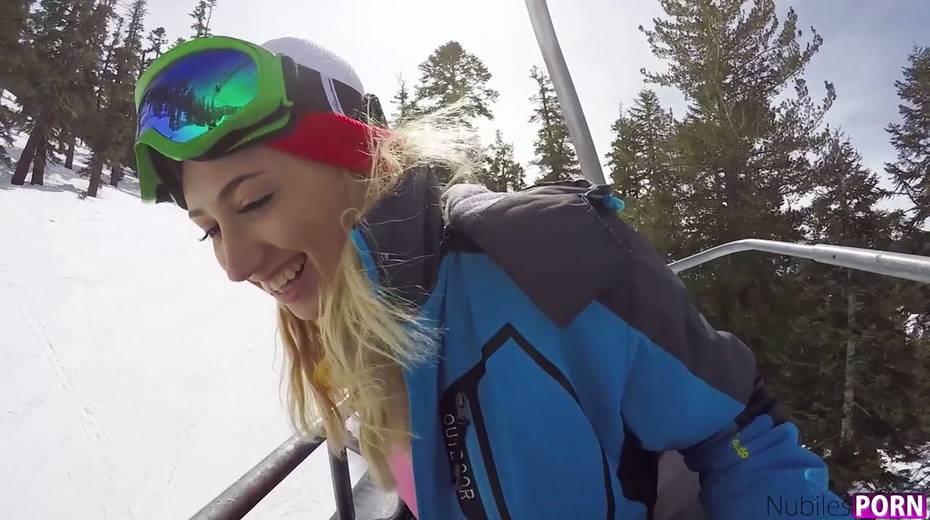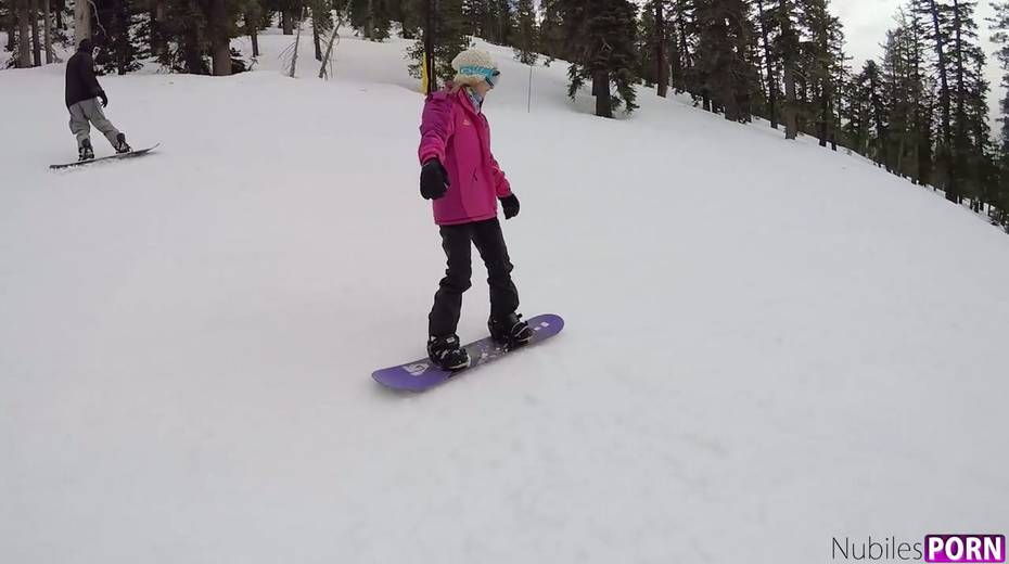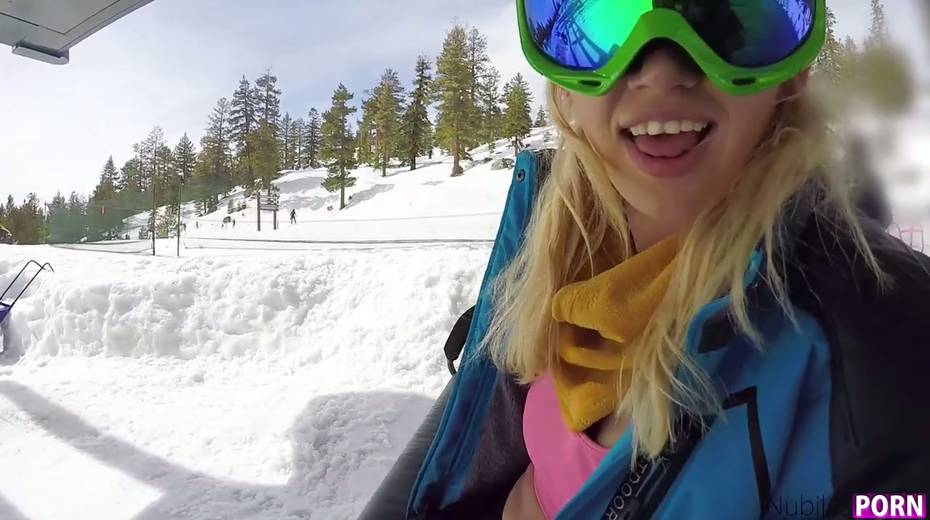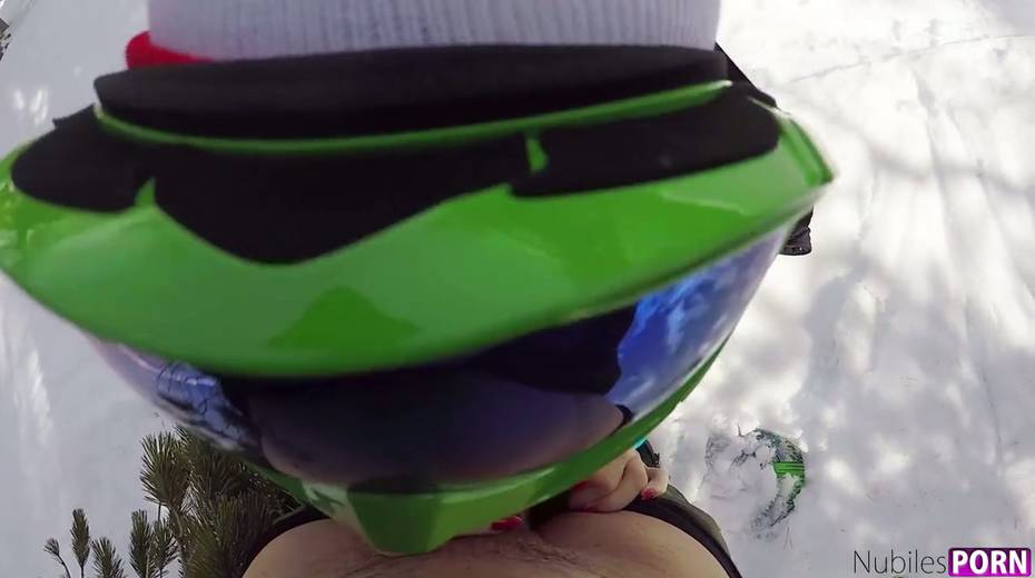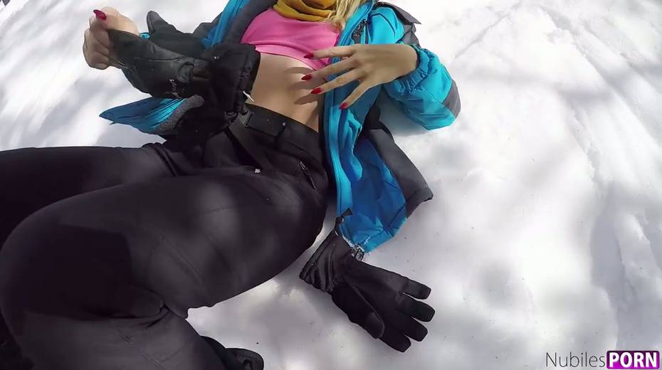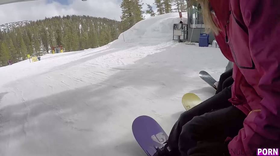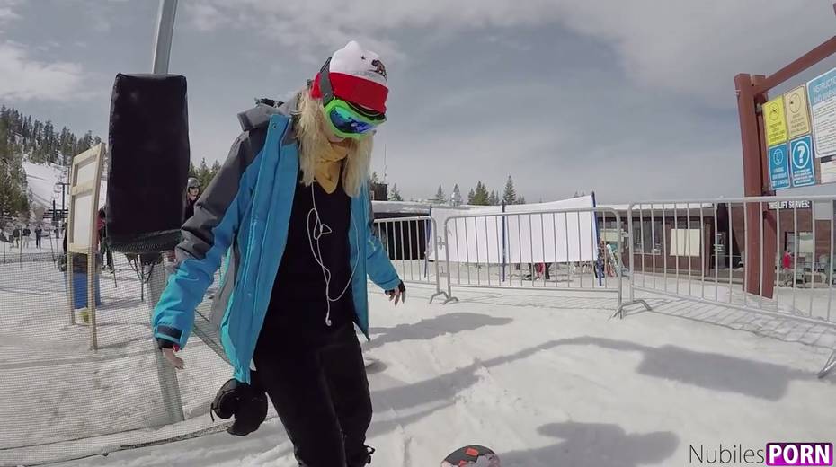 Slutty chick Kristen Scott gives a great blowjob in the snowy mountains