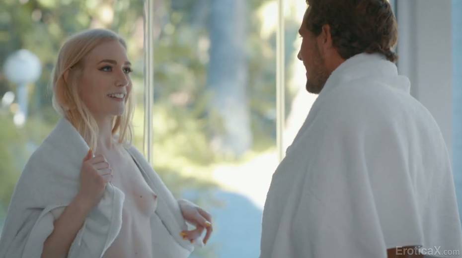 Pale skin blonde Emma Starletto is making love with her handsome boyfriend