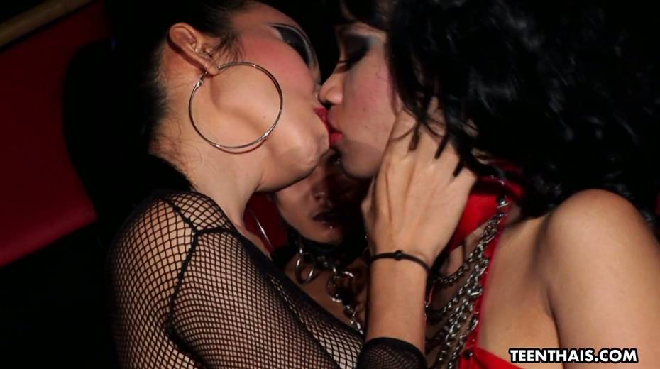 Two exotic Thai chicks fuck one dude in one private club of perverts