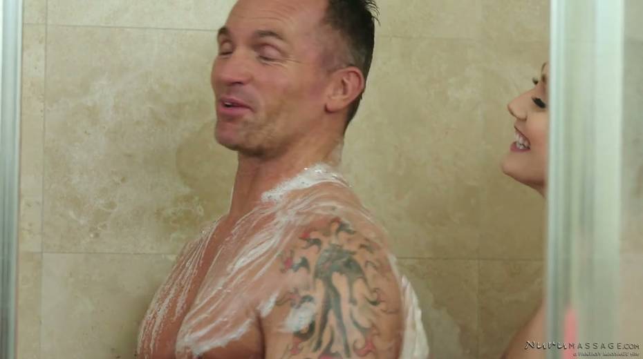 Milf of your dream AJ Applegate gives a good nuru massage to one horny man