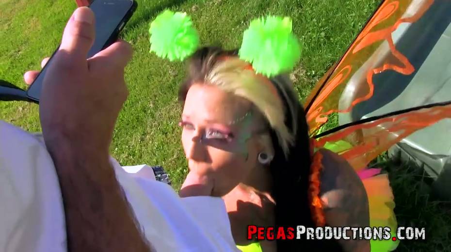 Chick in funny outfit Lily Fatale is fucked by kinky boyfriend right on the grass