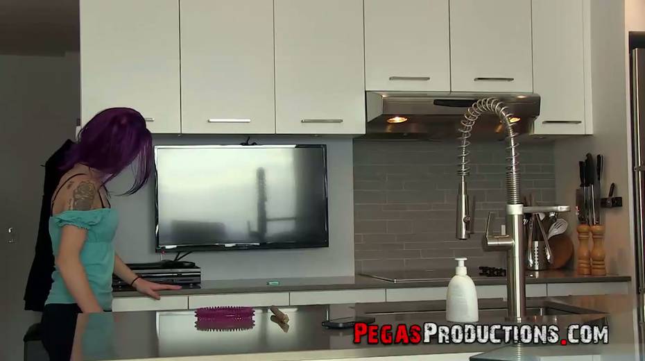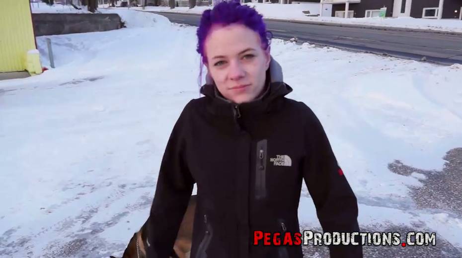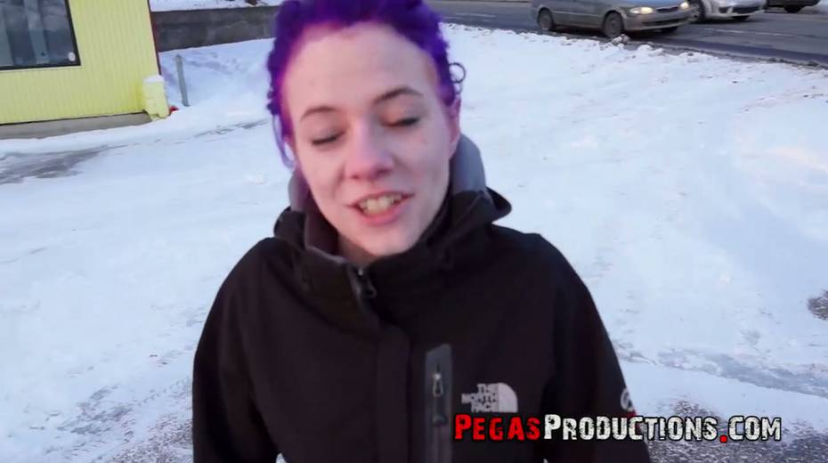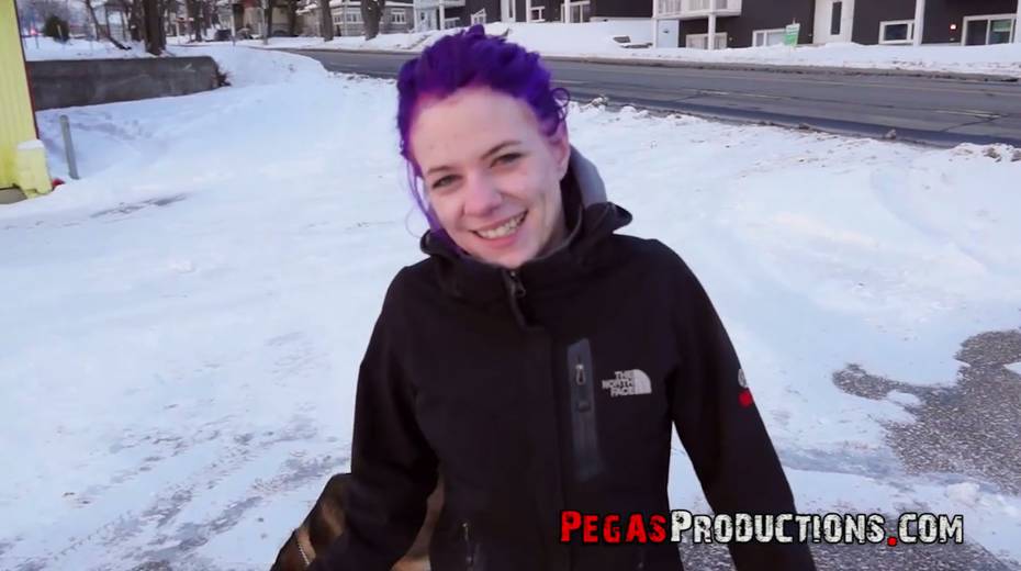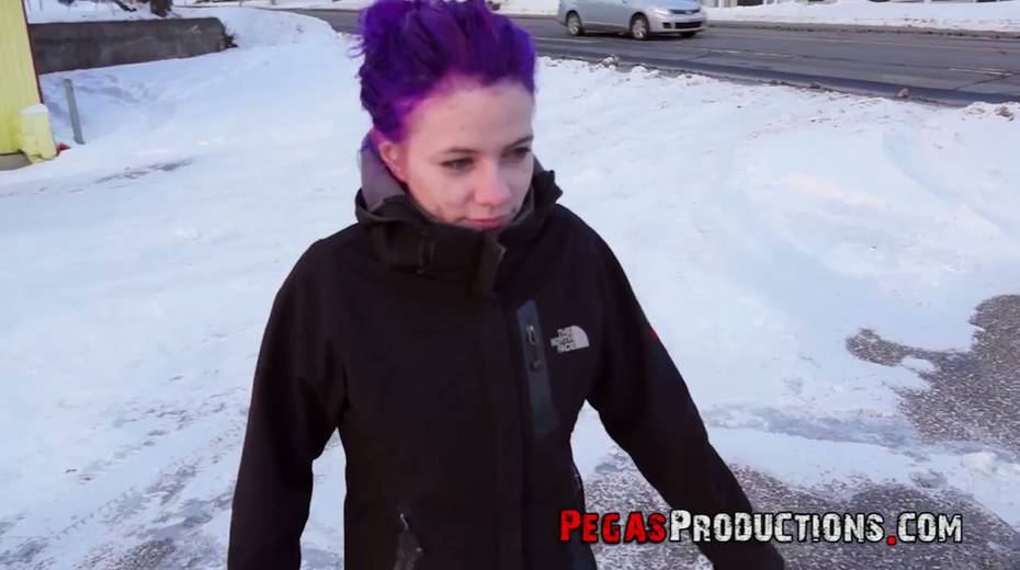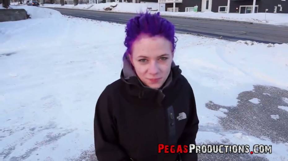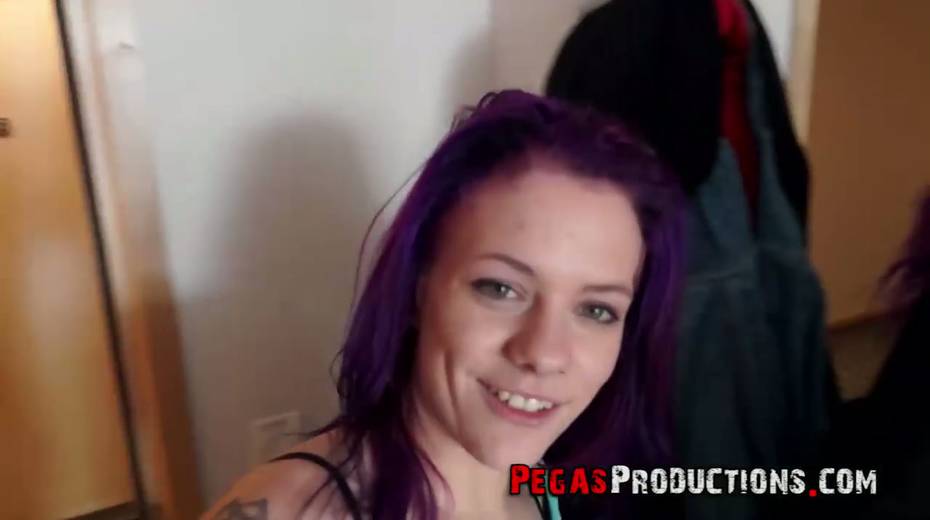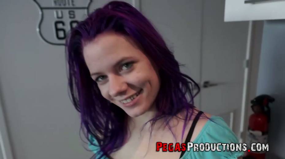 Chick with purple hair Lexye Moore is picked up and fucked by barely known guy