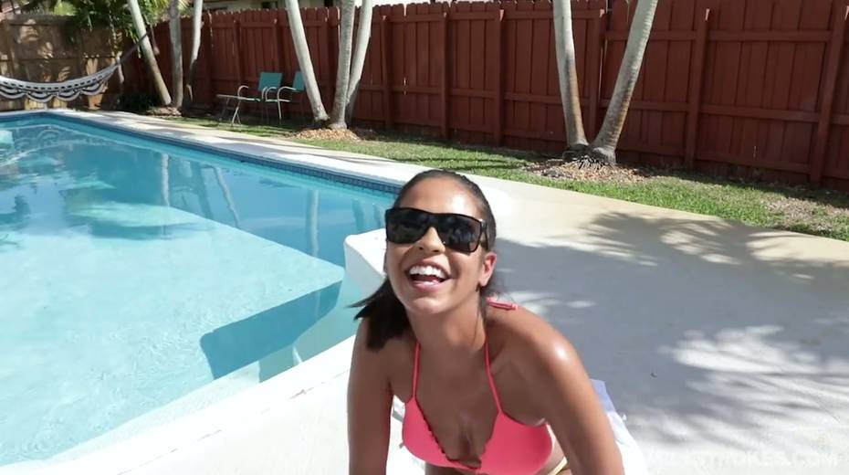 Tantalizing chick Vienna Black seduces boyfriend's brother and fucks him by the poolside