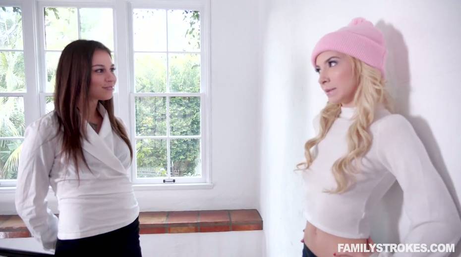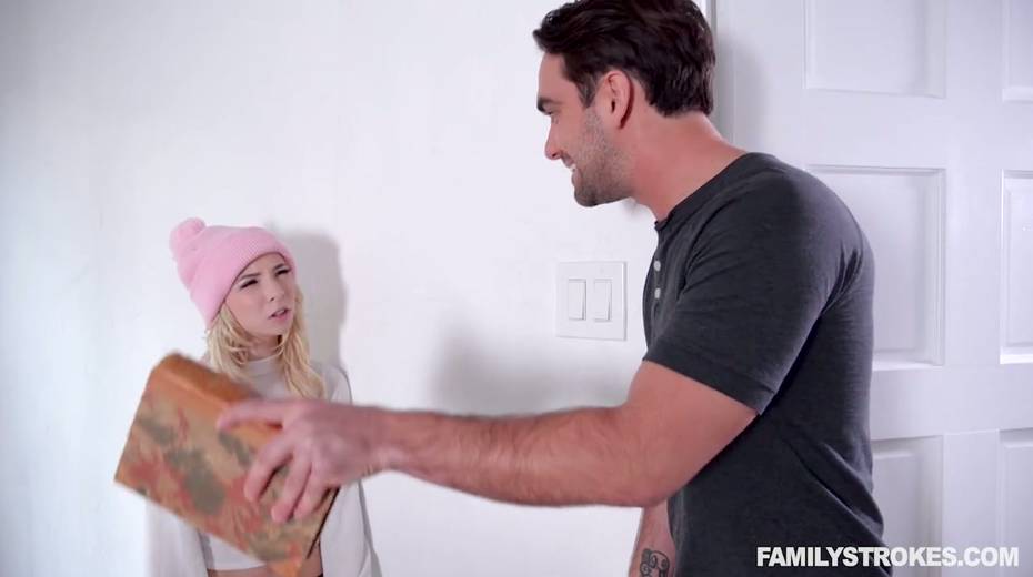 Petite blonde Kenzie Reeves gives a blowjob to horny stepsister's boyfriend