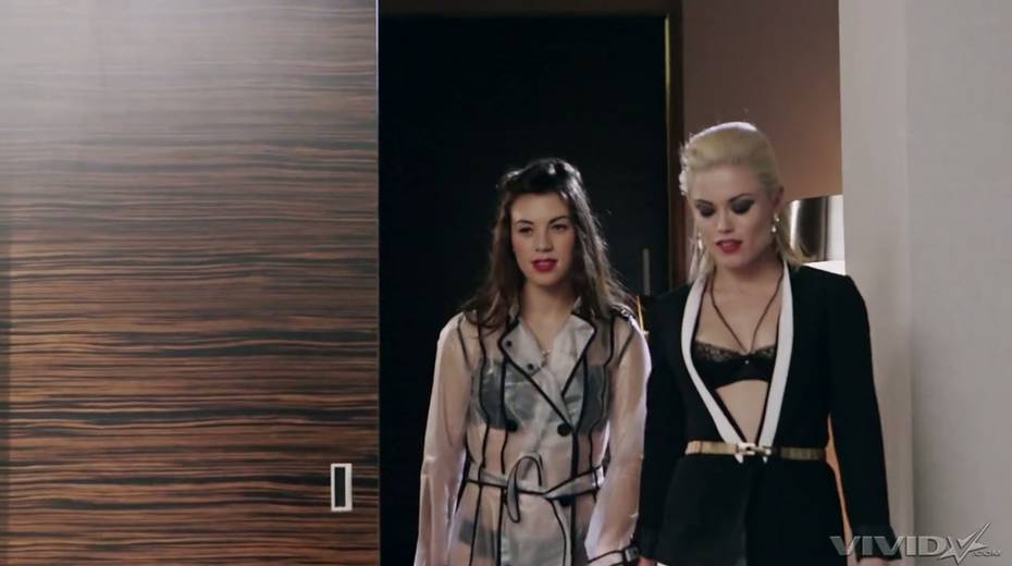 Two chicks wearing strapons fuck anus and pussy of seductive French babe Tiffany Doll