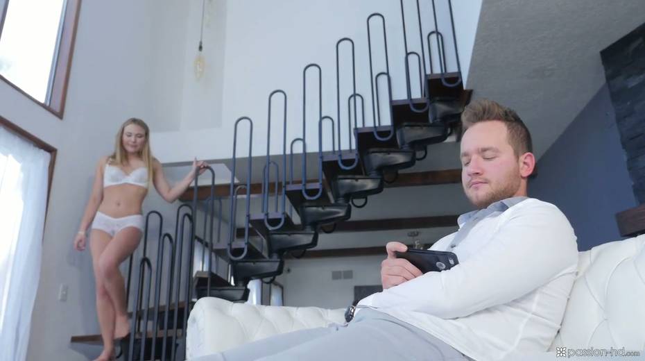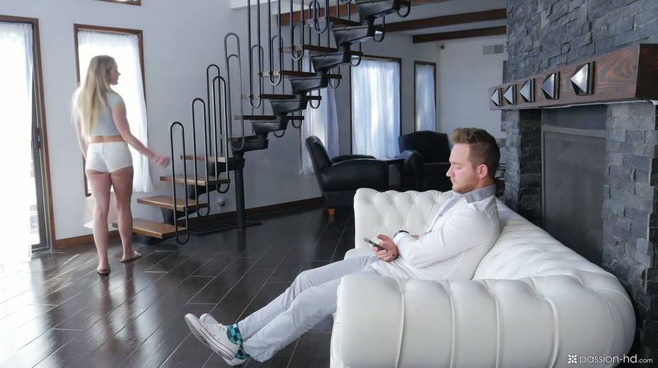 Gorgeous blonde Alyssa Cole gives a sensual blowjob and gets her muff nailed