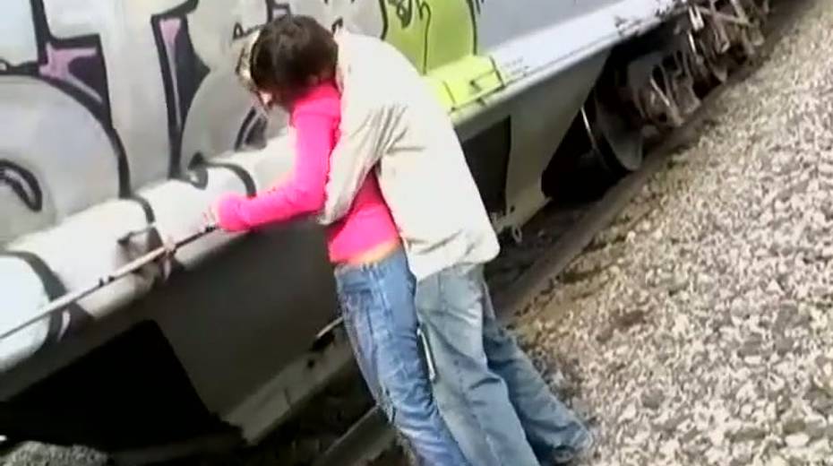 Uninhibited girlfriend Candy Kiss enjoys having crazy outdoor sex with her boyfriend