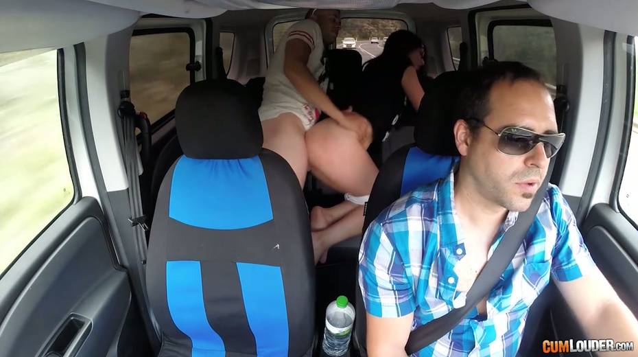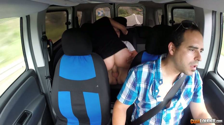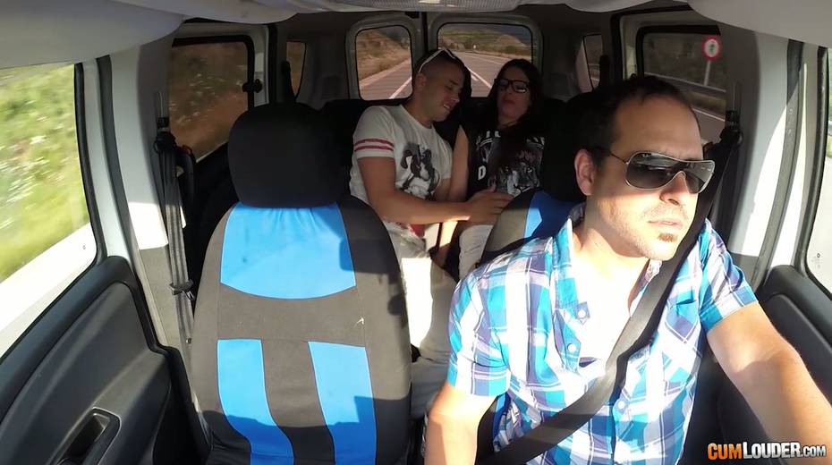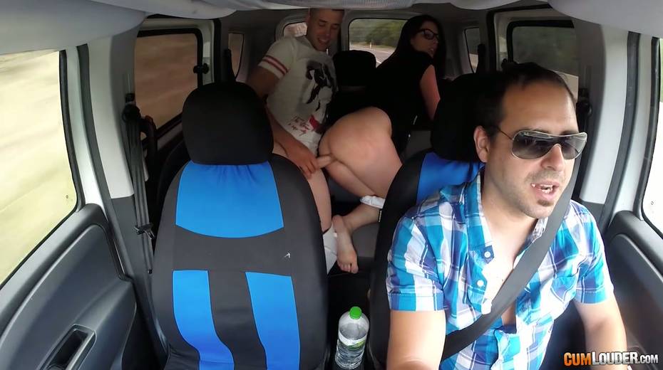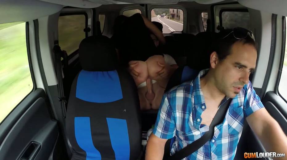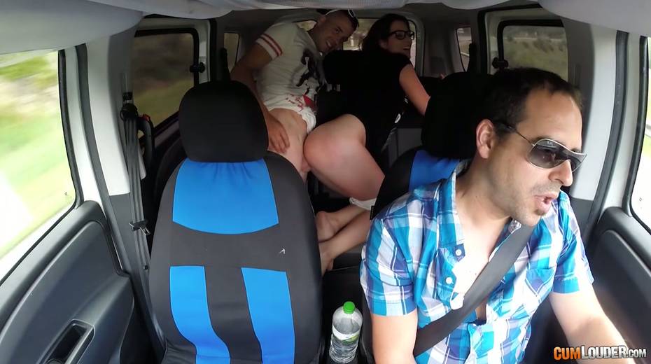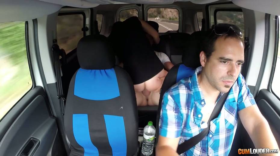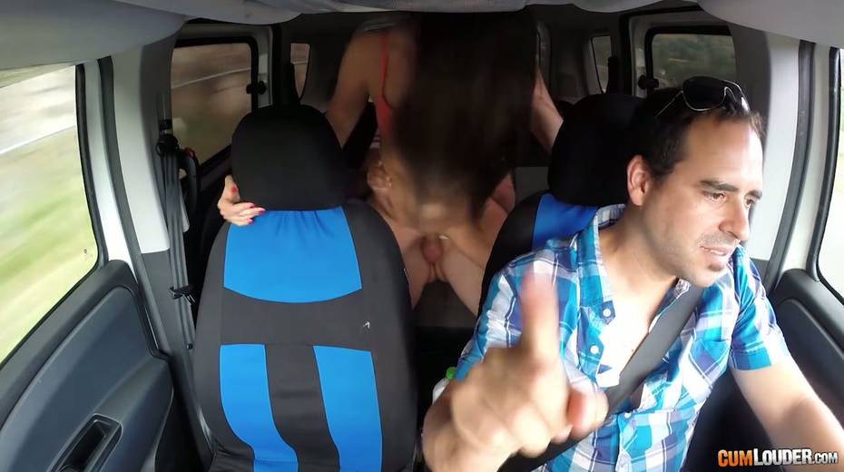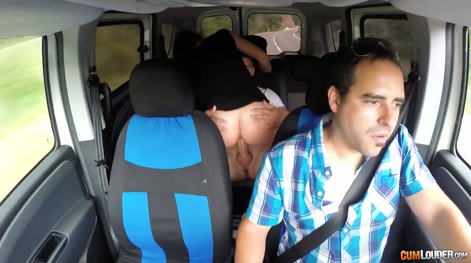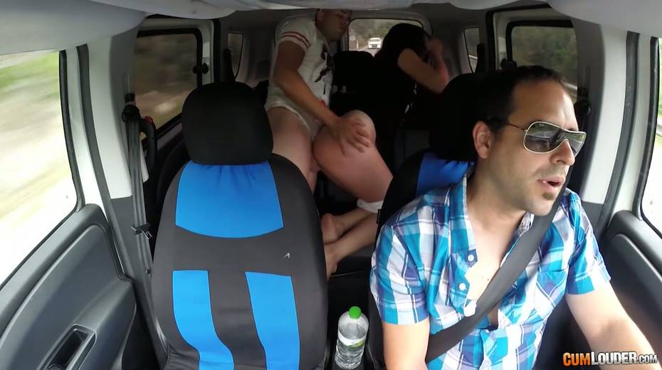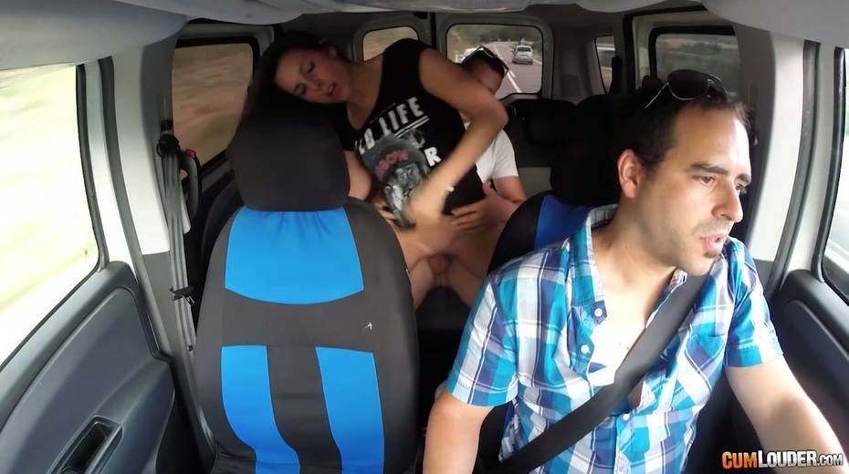 Kinky couple are having crazy quickie in the back seat in the presence of driver