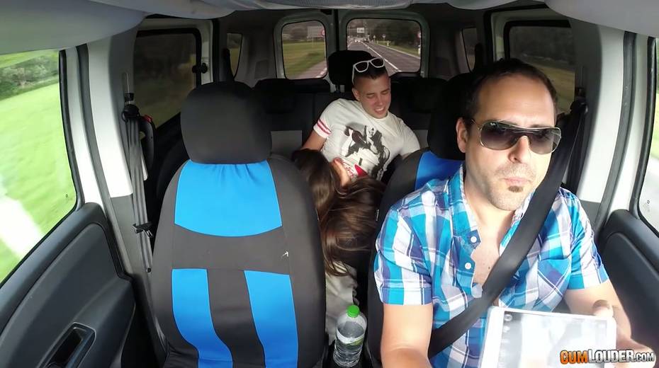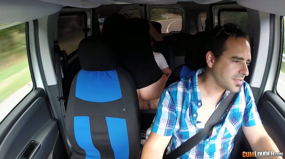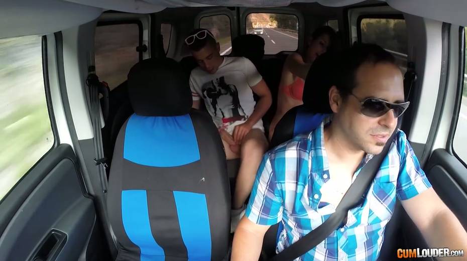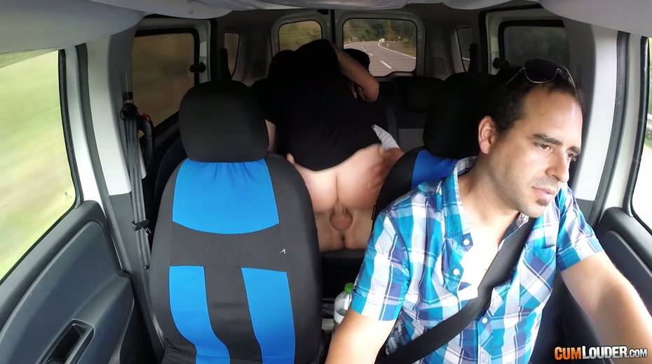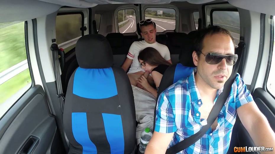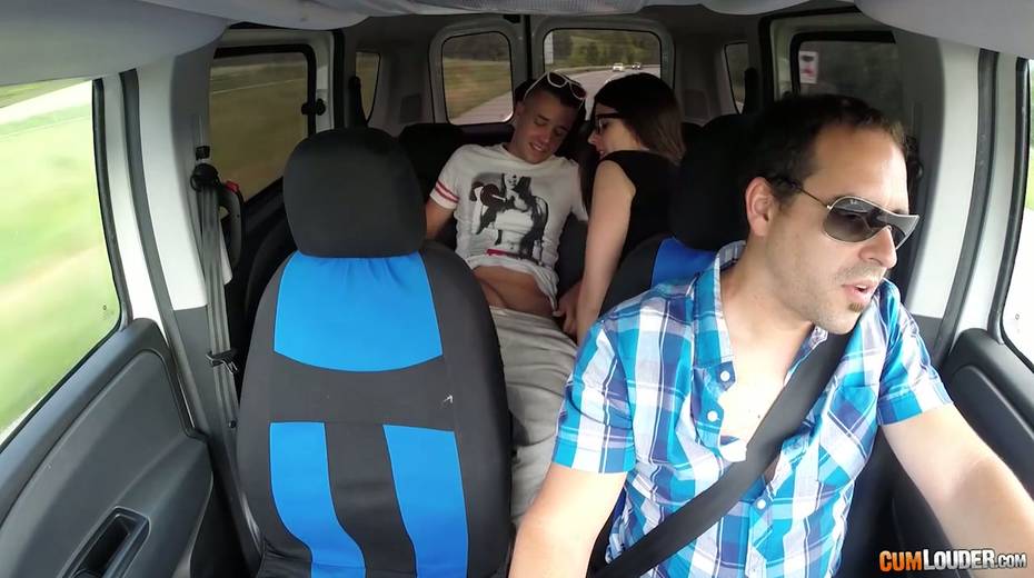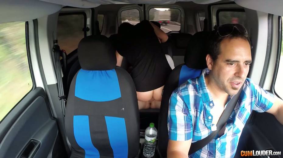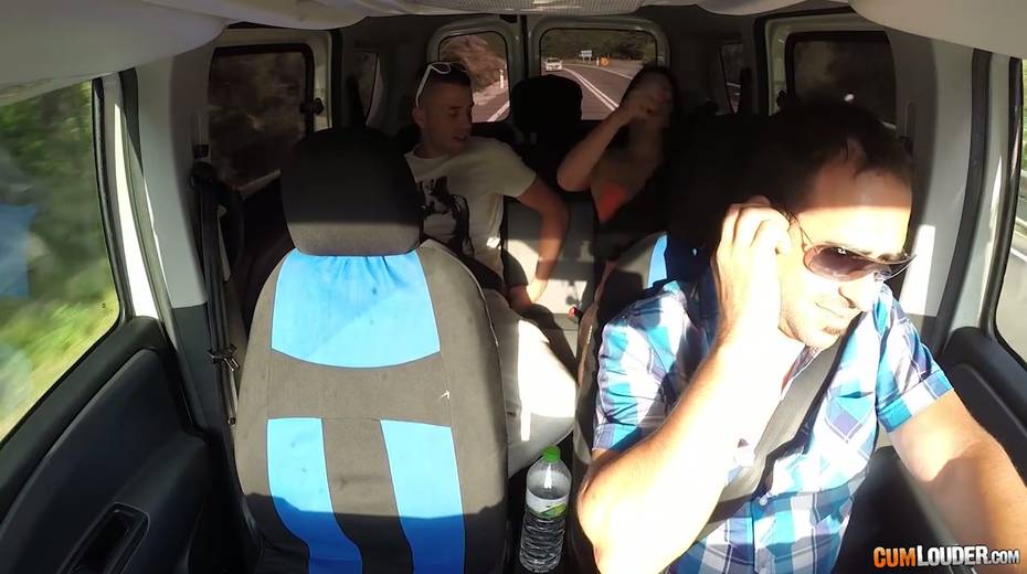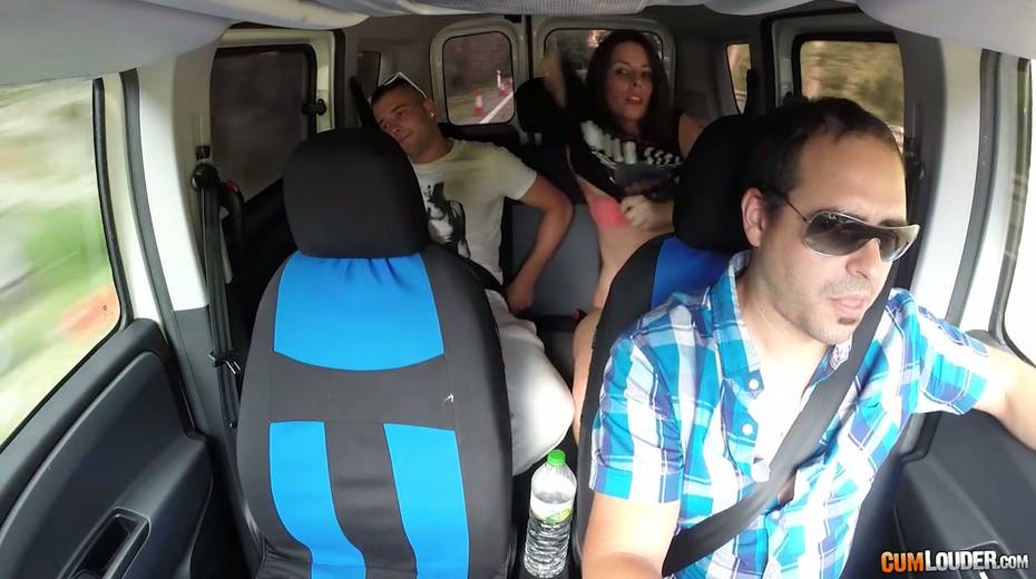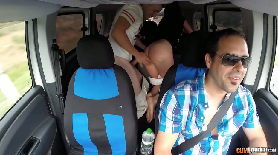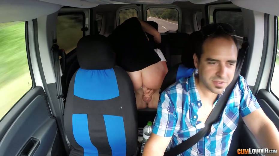 Kinky couple are having crazy quickie in the back seat in the presence of driver