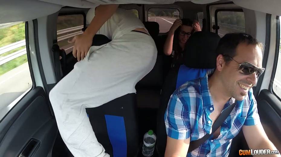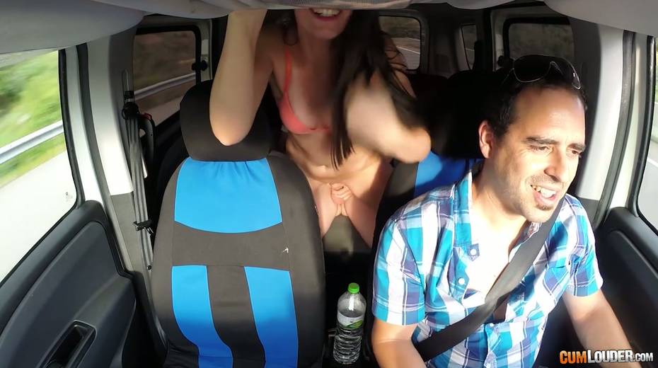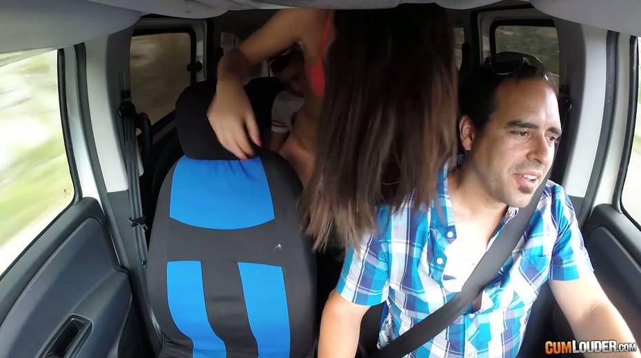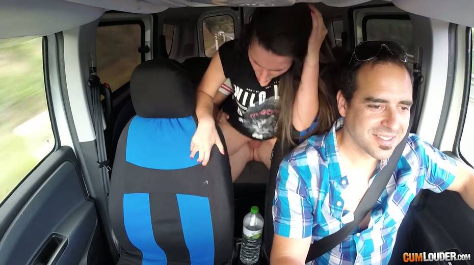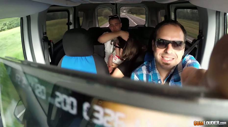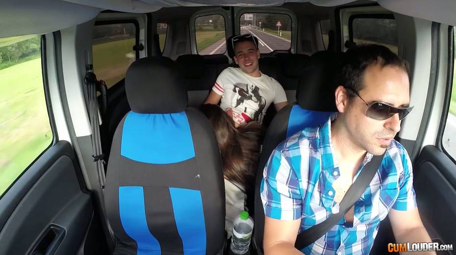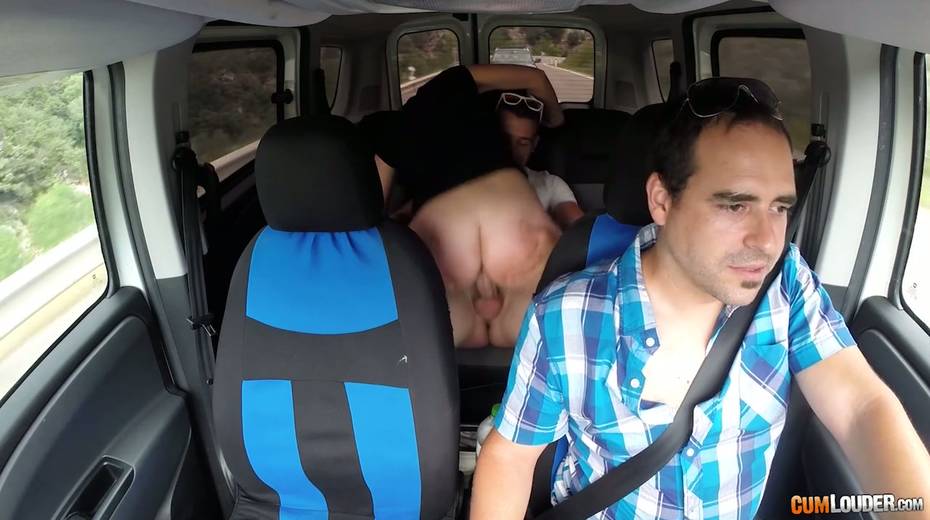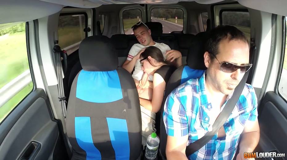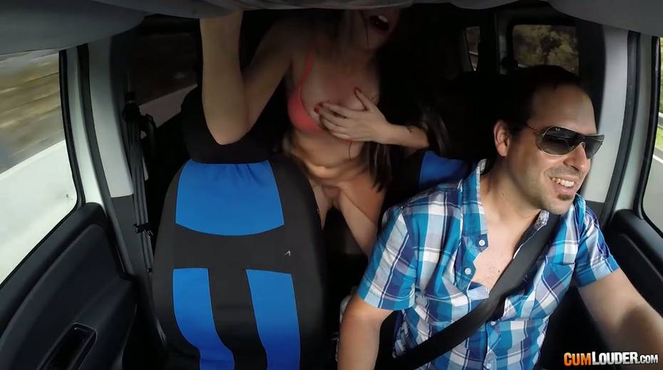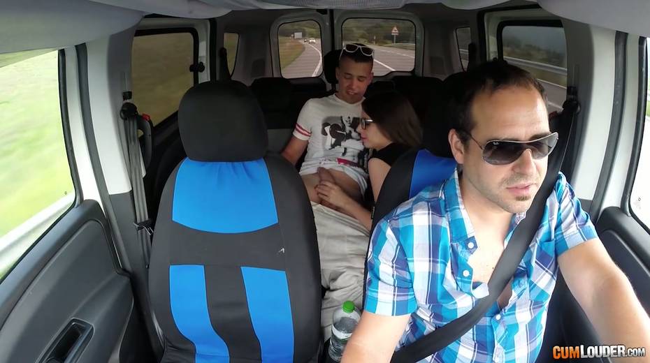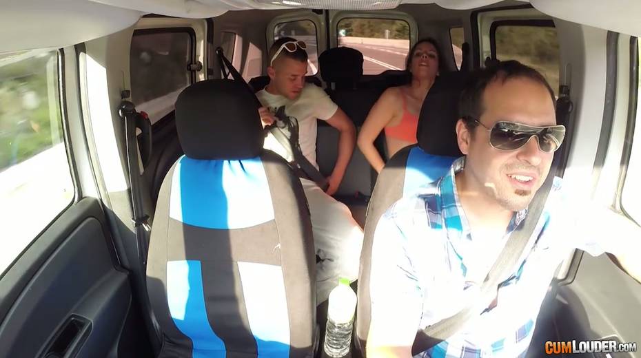 Kinky couple are having crazy quickie in the back seat in the presence of driver