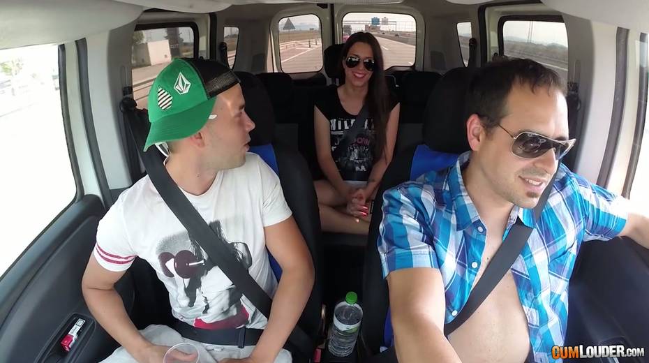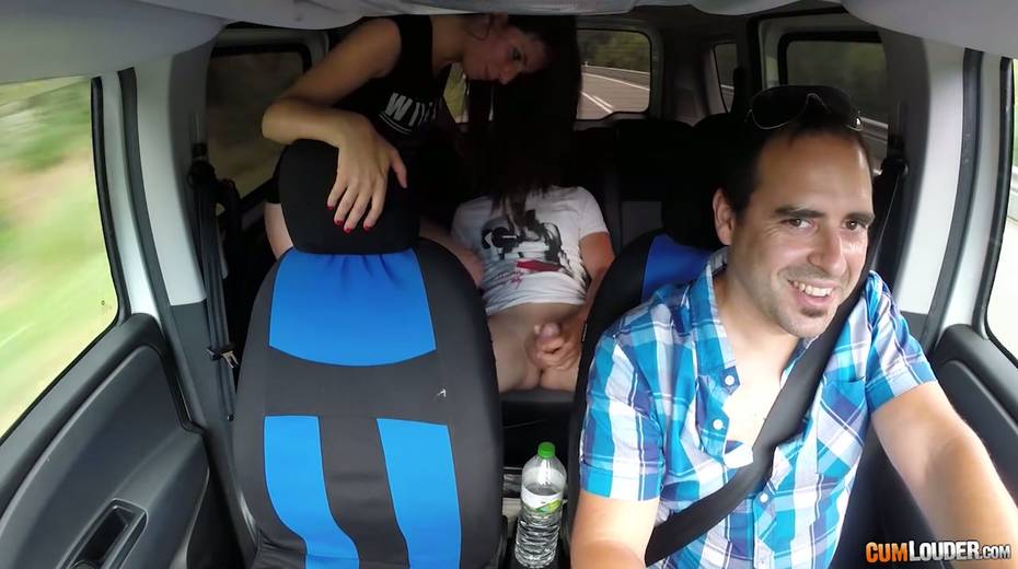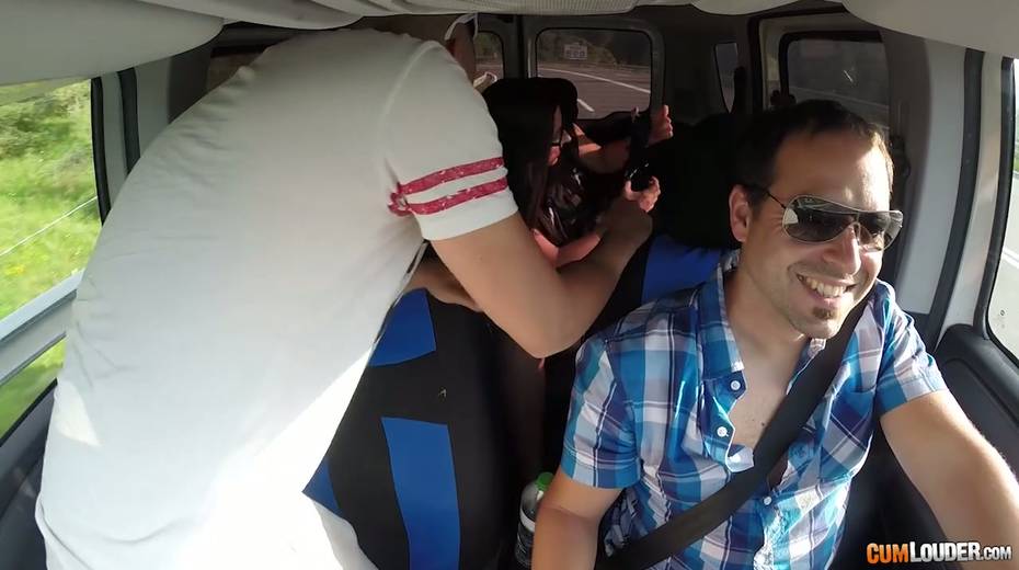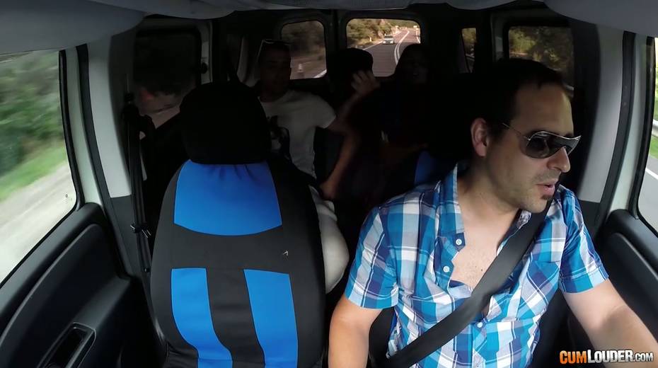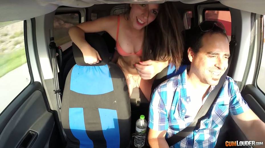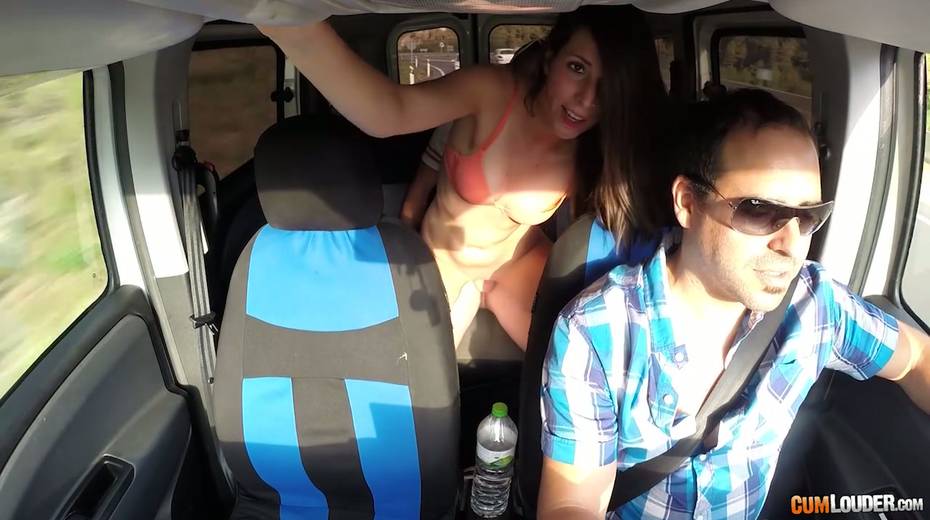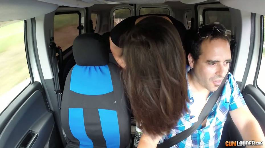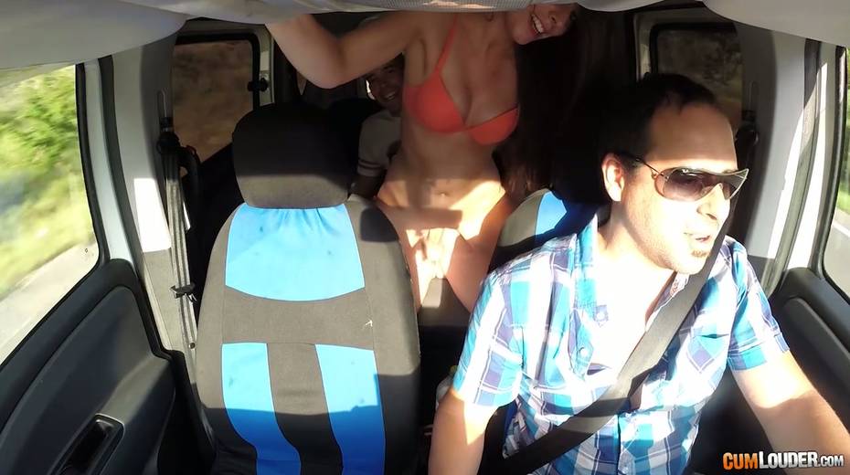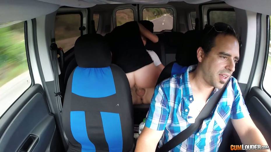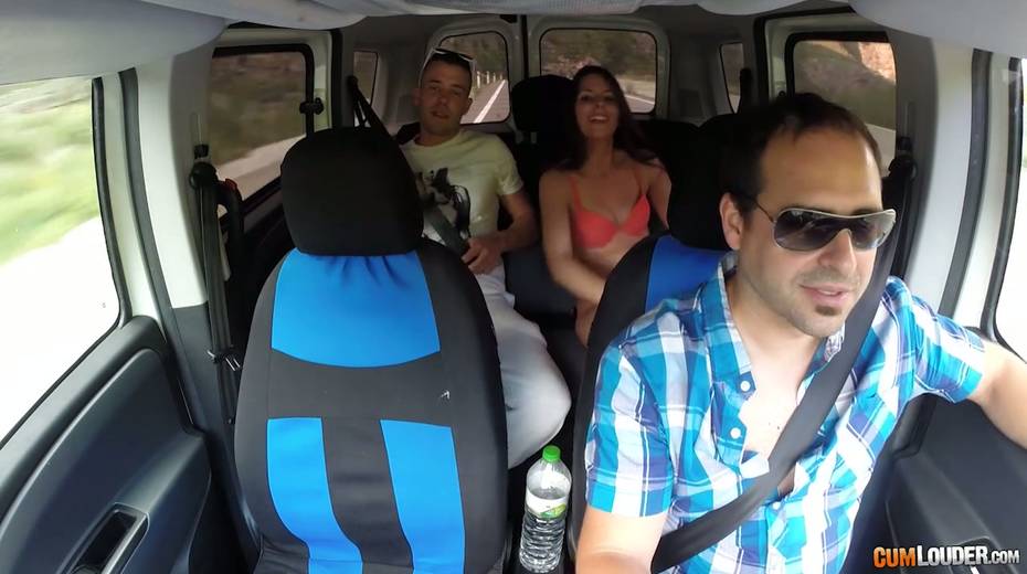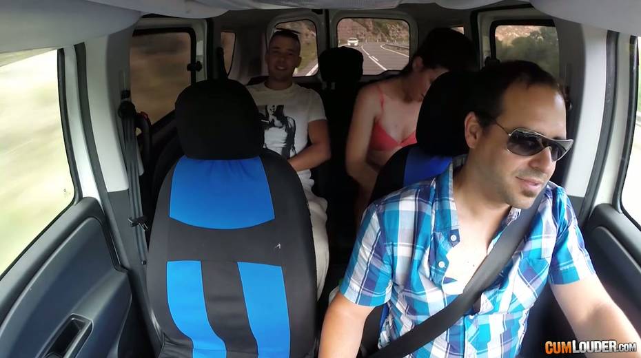Kinky couple are having crazy quickie in the back seat in the presence of driver