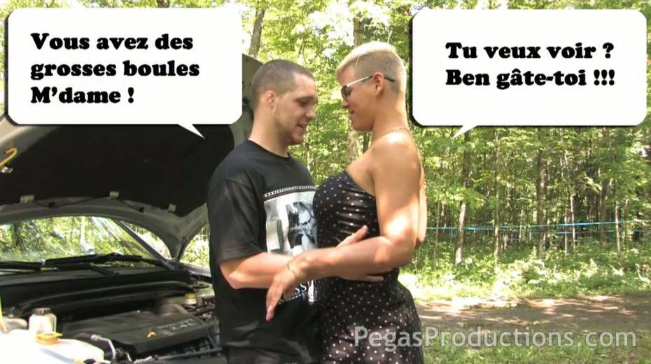 Juggy elder girlfriend Alyson Queen gives a blowjob and titjob in the forest