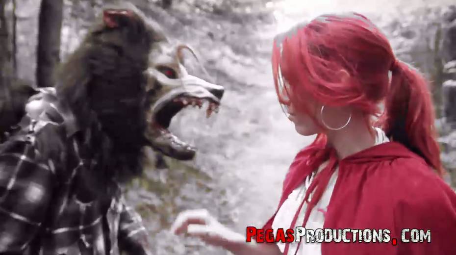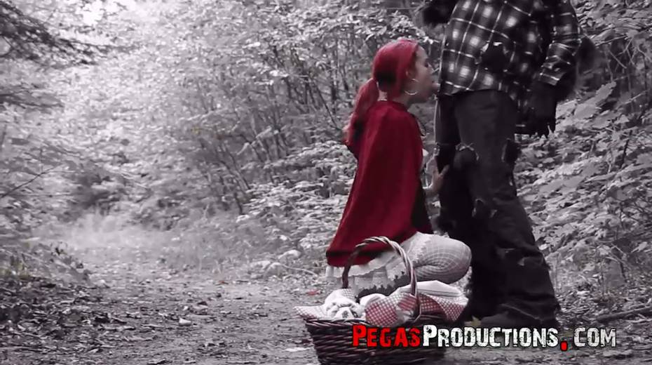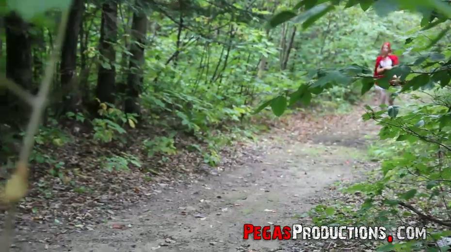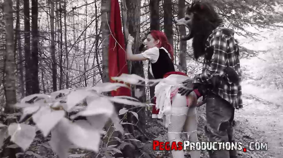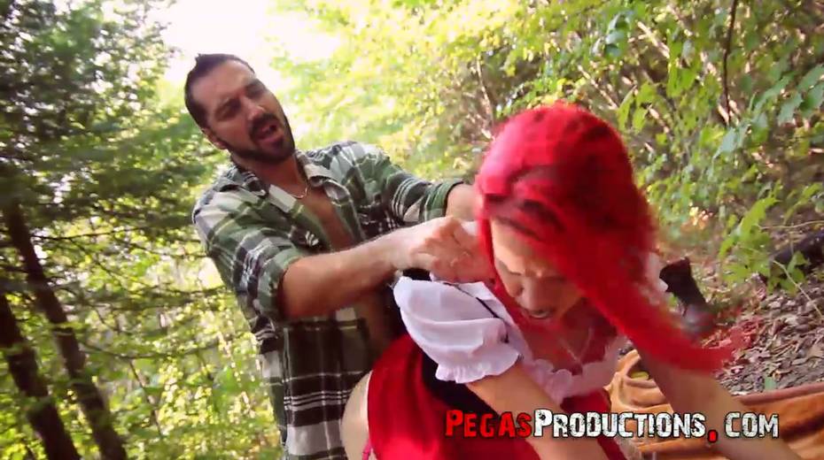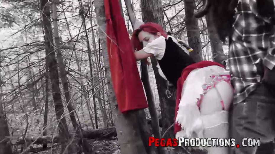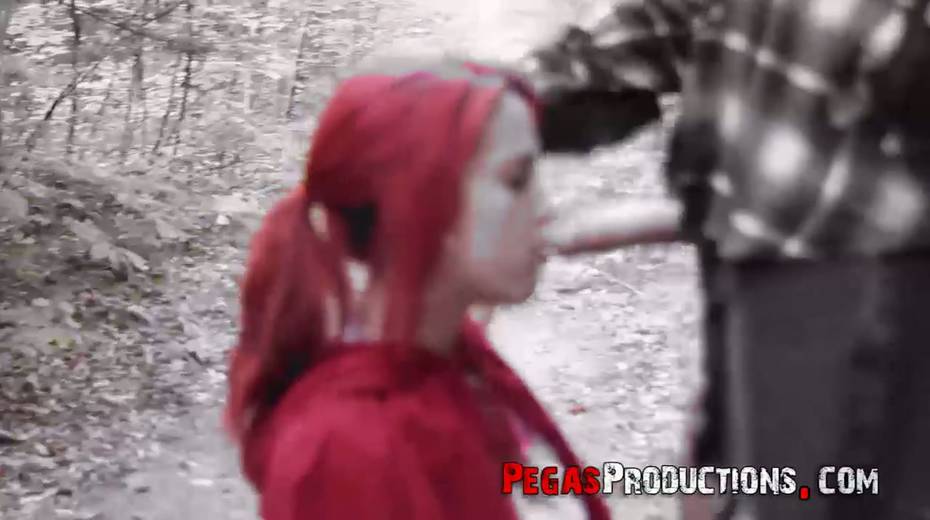 Pink haired chick in red riding hood outfit Brind Love is fucked in the forest
