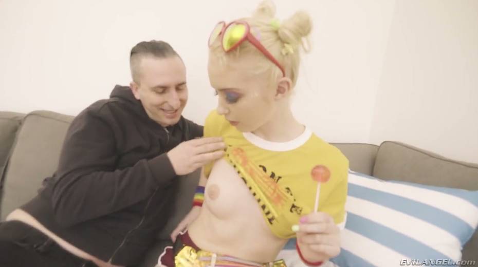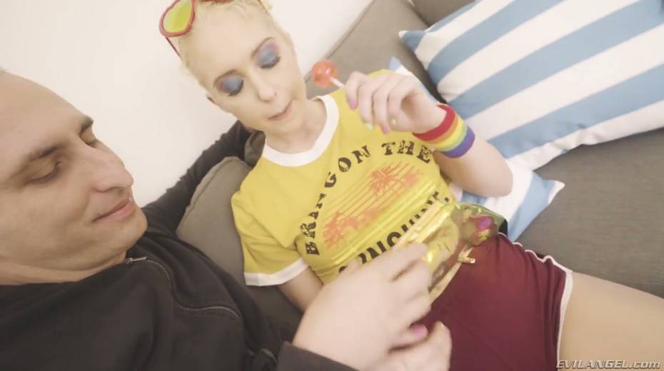 Kinky dude fucks GF's anal hole with lolly pop and drills deep throat without mercy