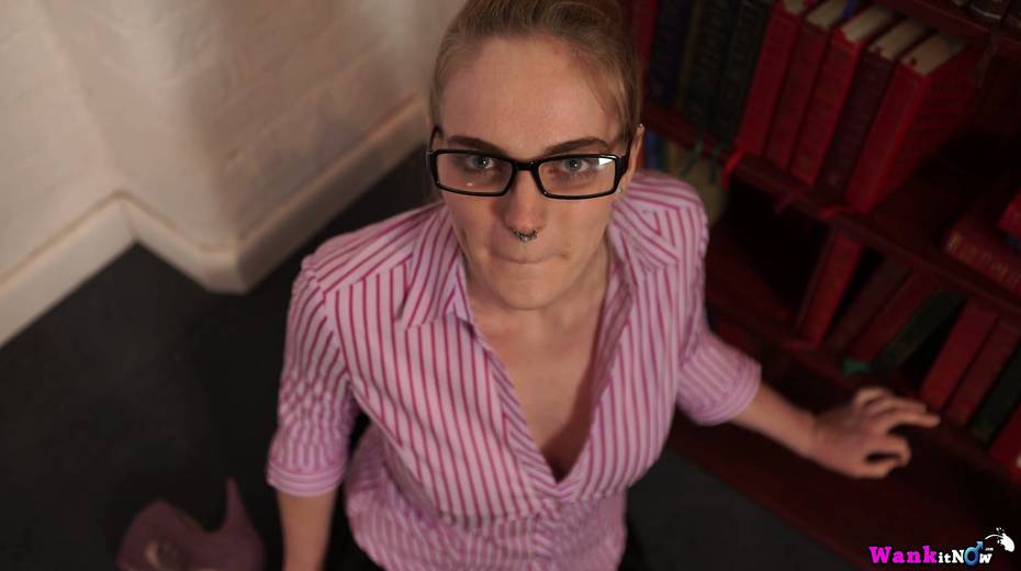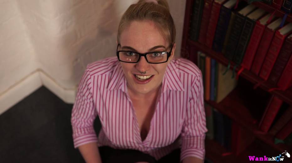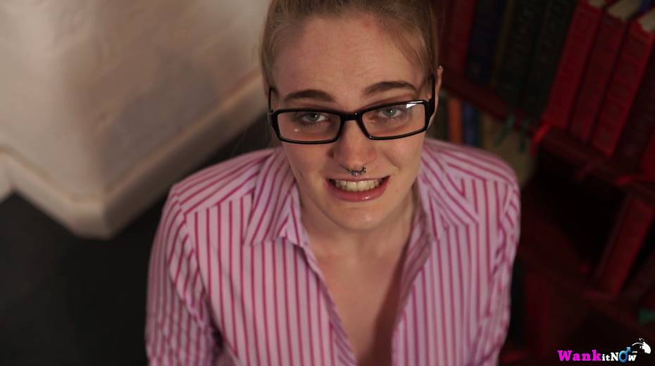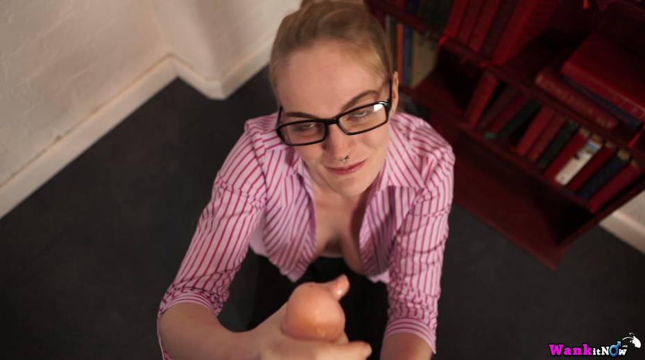 Nerdy secretary in glasses Carly Rae gives a good blowjob in hot POV scene