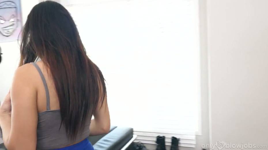 Latin hottie Gabriela Lopez swallows thick hard pole standing on her knees