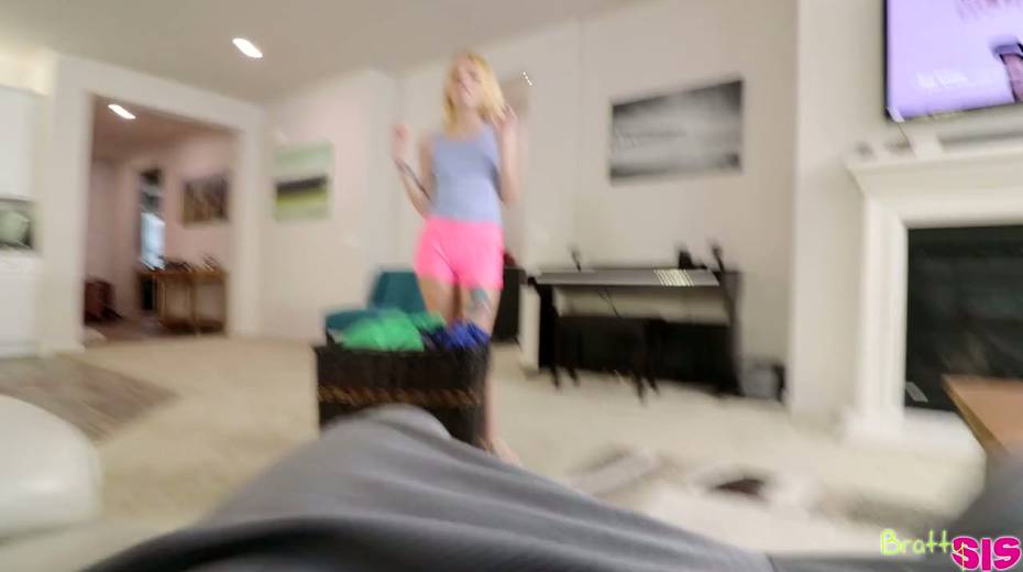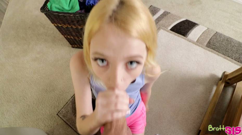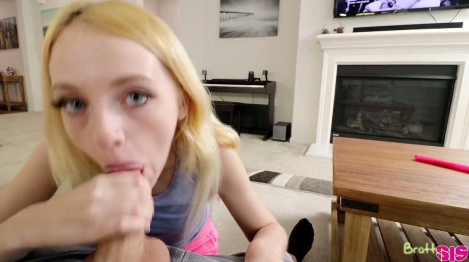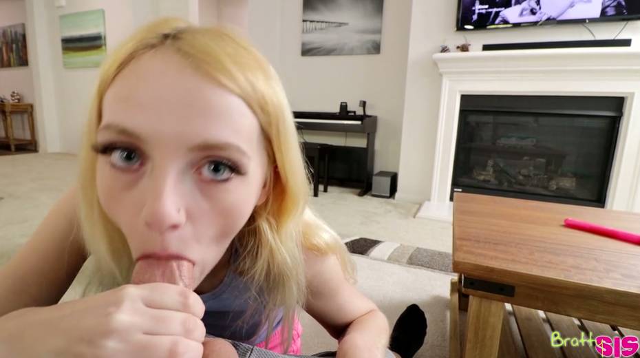 Pretty stepsis Kate Bloom is sucking thick penis of kinky stepbrother in hot POV scene