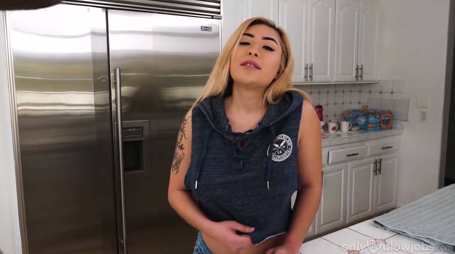 Eye catching busty chick Serena Skye gives a blowjob and titjob in hot POV scene