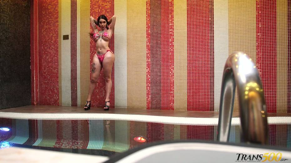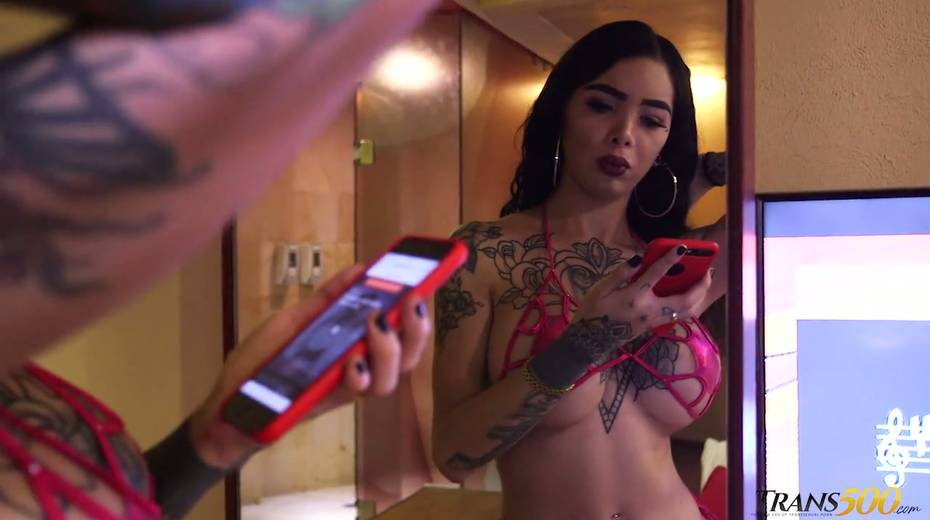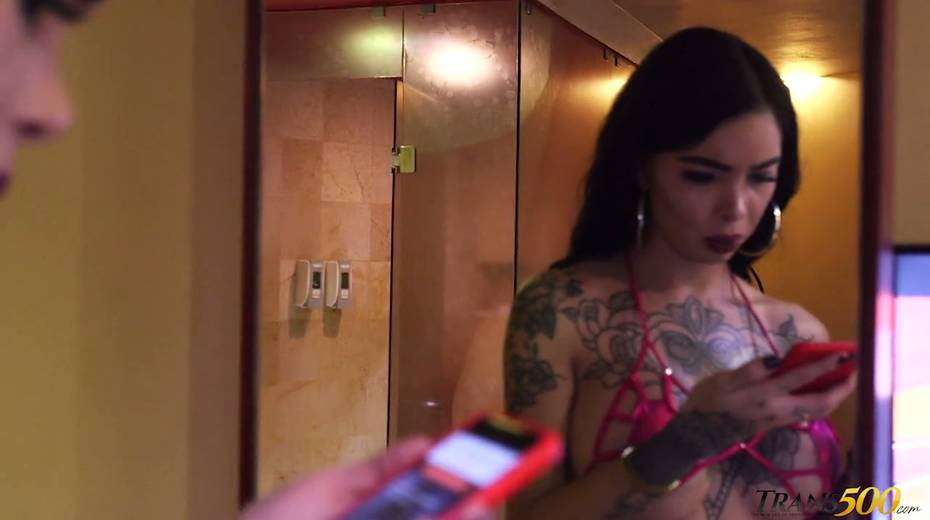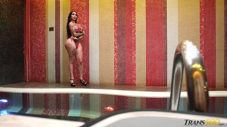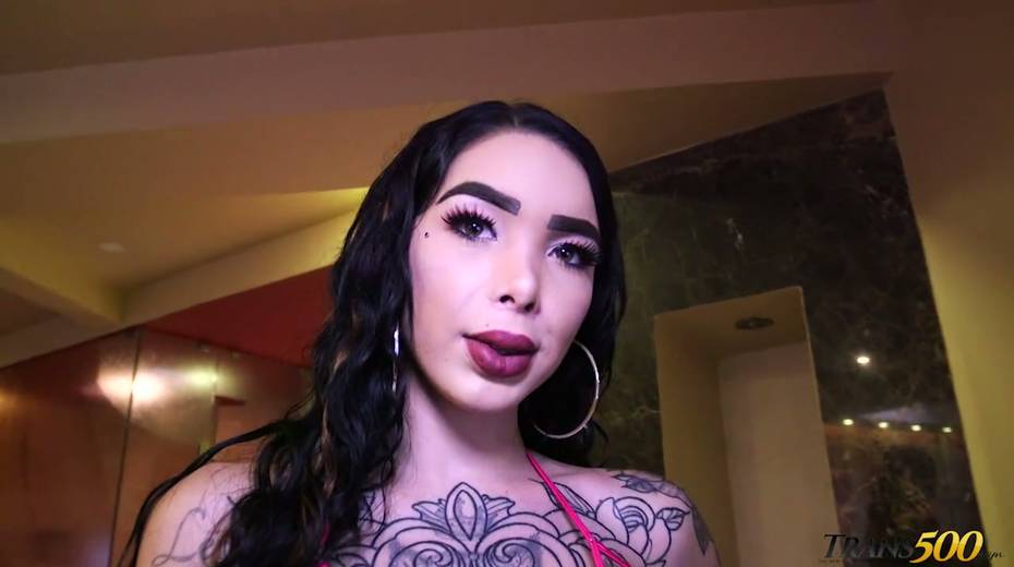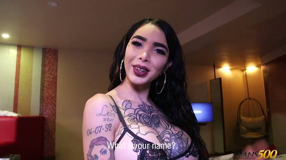 Tattooed big bottomed and juggy ladyboy Katy Leon is eager for your hard big dick