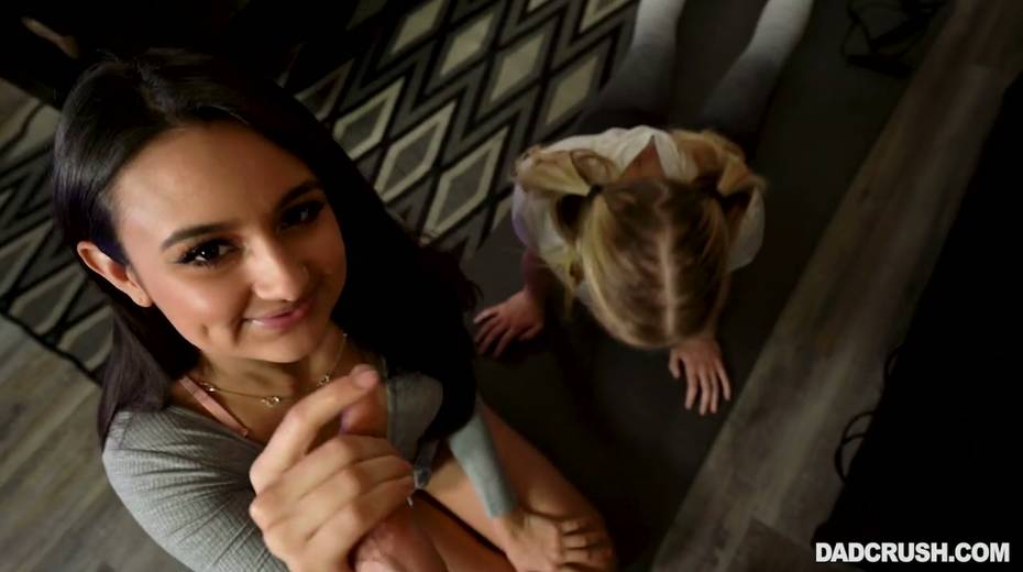 Nympho Eliza Ibarra and her timid girlfriend swallow huge stepdad's dick
