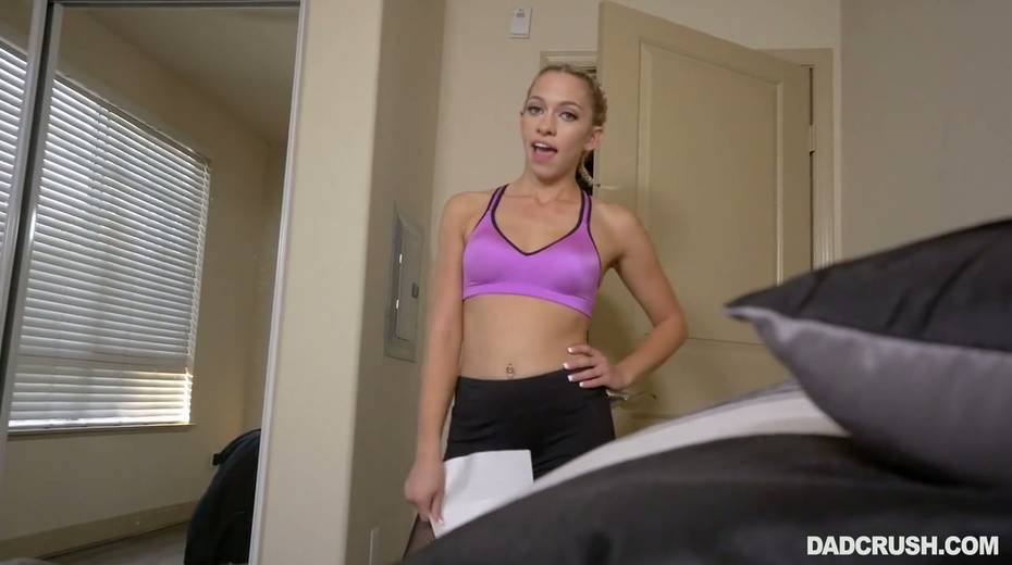 Slutty stepdaughter Khloe Kapri swallows hard penis of her step daddy