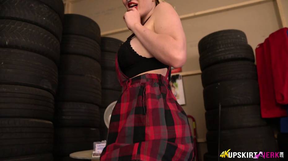 Slutty blonde Carly Rae shows off her plump ass and nice pussy upskirt